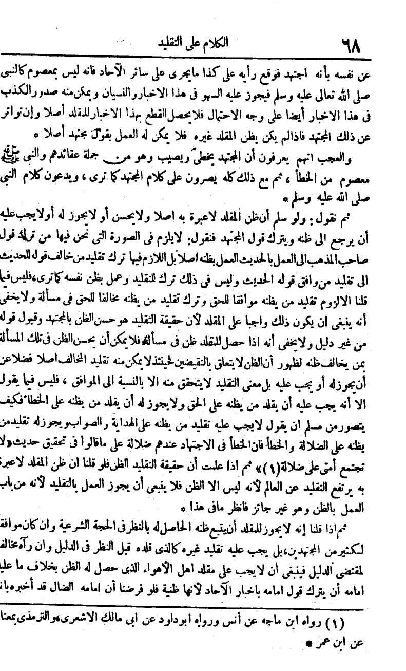 ثمَّ نقُول وَلَو سلم أَن ظن الْمُقَلّد لَا عِبْرَة بِهِ أصلا وَلَا يحسن أَو لَا يجوز لَهُ أَو لَا يجب عَلَيْهِ أَن يرجع الى ظَنّه وَيتْرك قَول الْمُجْتَهد فَنَقُول لَا يلْزم فِي الصُّورَة الَّتِي نَحن فِيهَا من ترك قَول صَاحب الْمَذْهَب الى الْعَمَل بِالْحَدِيثِ الْعَمَل بظنه أصلا بل اللَّازِم فِيهَا ترك تَقْلِيد من خَالف قَوْله للْحَدِيث الى تَقْلِيد من وَافق قَوْله الحَدِيث وَلَيْسَ فِي ذَلِك ترك للتقليد وَعمل بِظَنّ نَفسه كَمَا ترى فَلَيْسَ فِيمَا قُلْنَا الا لُزُوم تَقْلِيد من يَظُنّهُ مُوَافقا للحق وَترك تَقْلِيد من يَظُنّهُ مُخَالفا للحق فِي مسالة وَلَا يخفى أَنه يَنْبَغِي أَن يكون ذَلِك وَاجِبا على الْمُقَلّد لِأَن حَقِيقَة التَّقْلِيد هُوَ حسن الظَّن بالمجتهد وَقبُول قَوْله من غير دَلِيل وَلَا يخفى أَنه اذا حصل للمقلد ظن فِي مَسْأَلَة فَلَا يُمكن أَن يحسن الظَّن فِي تِلْكَ الْمَسْأَلَة بِمن يُخَالف ظَنّه لظُهُور أَن الظَّن لَا يتَعَلَّق بالنقيضين فَحِينَئِذٍ لَا يُمكن مِنْهُ تَقْلِيد الْمُخَالف أصلا فضلا عَن أَن يجوز لَهُ أَو يجب عَلَيْهِ بل معنى التَّقْلِيد لَا يتَحَقَّق مِنْهُ الا بِالنِّسْبَةِ الى الْمُوَافق فَلَيْسَ فِيمَا يَقُول الا أَنه يجب عَلَيْهِ أَن يُقَلّد من يَظُنّهُ على الْحق وَلَا يجوز لَهُ أَن يُقَلّد من يَظُنّهُ على الْخَطَأ فَكيف يتَصَوَّر من مُسلم أَن يَقُول لَا يجب عَلَيْهِ تَقْلِيد من يَظُنّهُ على الْهِدَايَة وَالصَّوَاب وَيجوز لَهُ تَقْلِيد من يَظُنّهُ على الضَّلَالَة وَالْخَطَأ فان الْخَطَأ فِي الِاجْتِهَاد عِنْدهم ضَلَالَة على مَا قَالُوا فِي تَحْقِيق حَدِيث لَا تَجْتَمِع أمتِي على ضَلَالَة ثمَّ اذا علمت أَن حَقِيقَة التَّقْلِيد الظَّن فَلَو قُلْنَا أَن ظن الْمُقَلّد لَا عِبْرَة بِهِ يرْتَفع التَّقْلِيد عَن الْعَالم لِأَنَّهُ لَيْسَ الا الظَّن فَلَا يَنْبَغِي أَن يجوز الْعَمَل بالتقليد لِأَنَّهُ من بَاب الْعَمَل بِالظَّنِّ وَهُوَ غير جَائِز فَانْظُر مَا فِي هَذَا