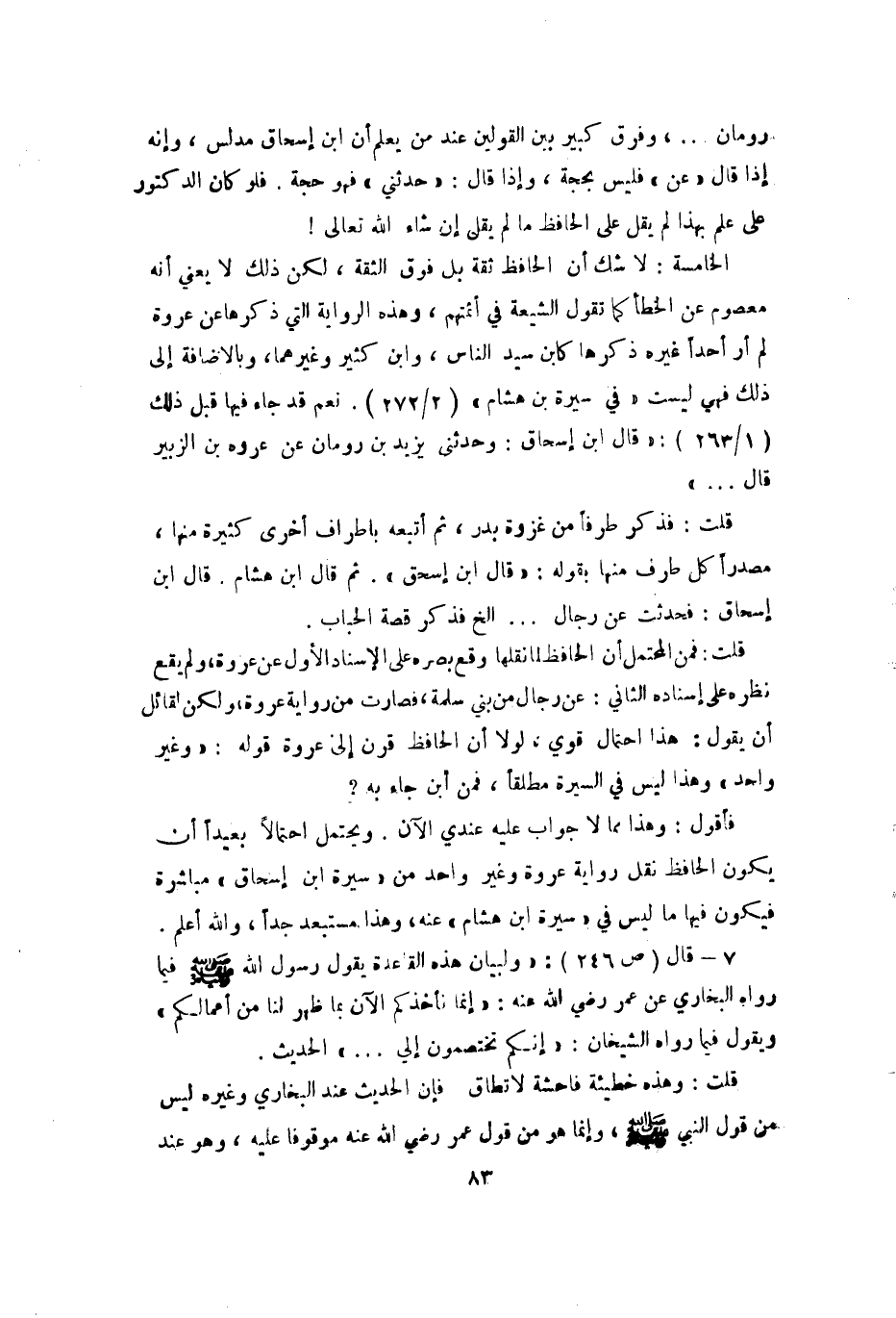 7 - قال (ص 246) : (ولبيان هذه القاعدة يقول رسول الله A فيما رواه البخاري عن عمر Bهـ: (إنما نأخذكم الآن بما ظهر لنا من أعمالكم ويقول فيما رواه الشيخان: (إنكم تختصمون إلي. . .) الحديث)