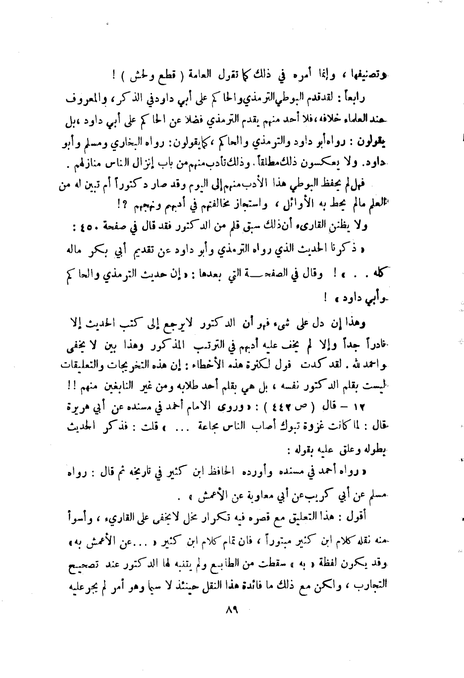 أقول: هذا التعليق مع قصره فيه تكرار مخل لا يخفى على القاريء وأسوأ منه نقله كلام ابن كثير مبتورا فإن تمام كلام ابن كثير (. . . عن الأعمش به) وقد يكون لفظة (به) سقطت من الطابع ولم يتنبه لها الدكتور عند تصحيح التجارب ولكن مع ذلك ما فائدة هذا النقل حينئذ لا سيما وهو أمر لم يجر عليه
