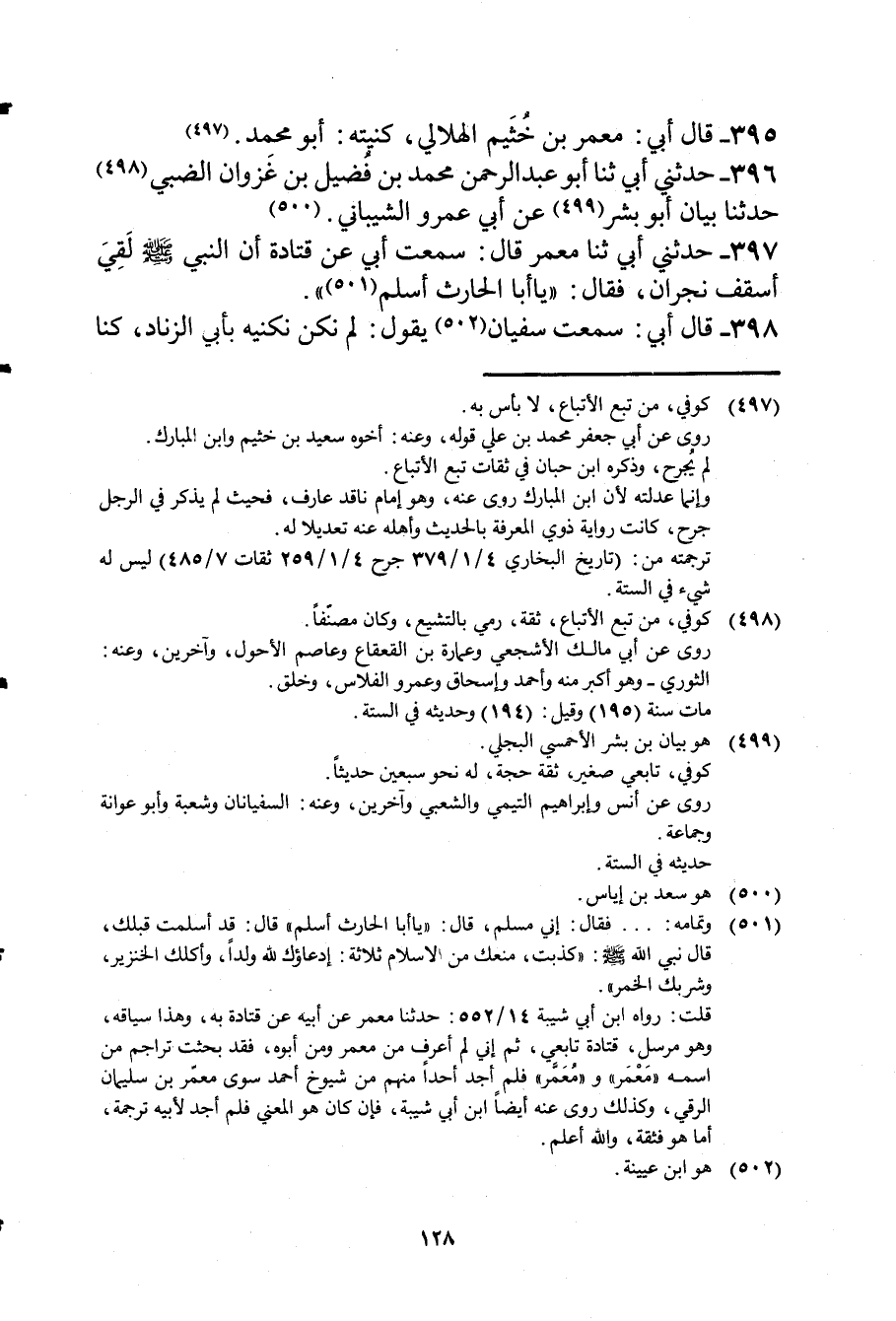 397 - حَدثنِي أبي ثَنَا معمر قَالَ سَمِعت أبي عَن قَتَادَة أَن النَّبِي صلى الله عَلَيْهِ وَسلم لَقِي أَسْقُف نَجْرَان فَقَالَ يَا أَبَا الْحَارِث أسلم