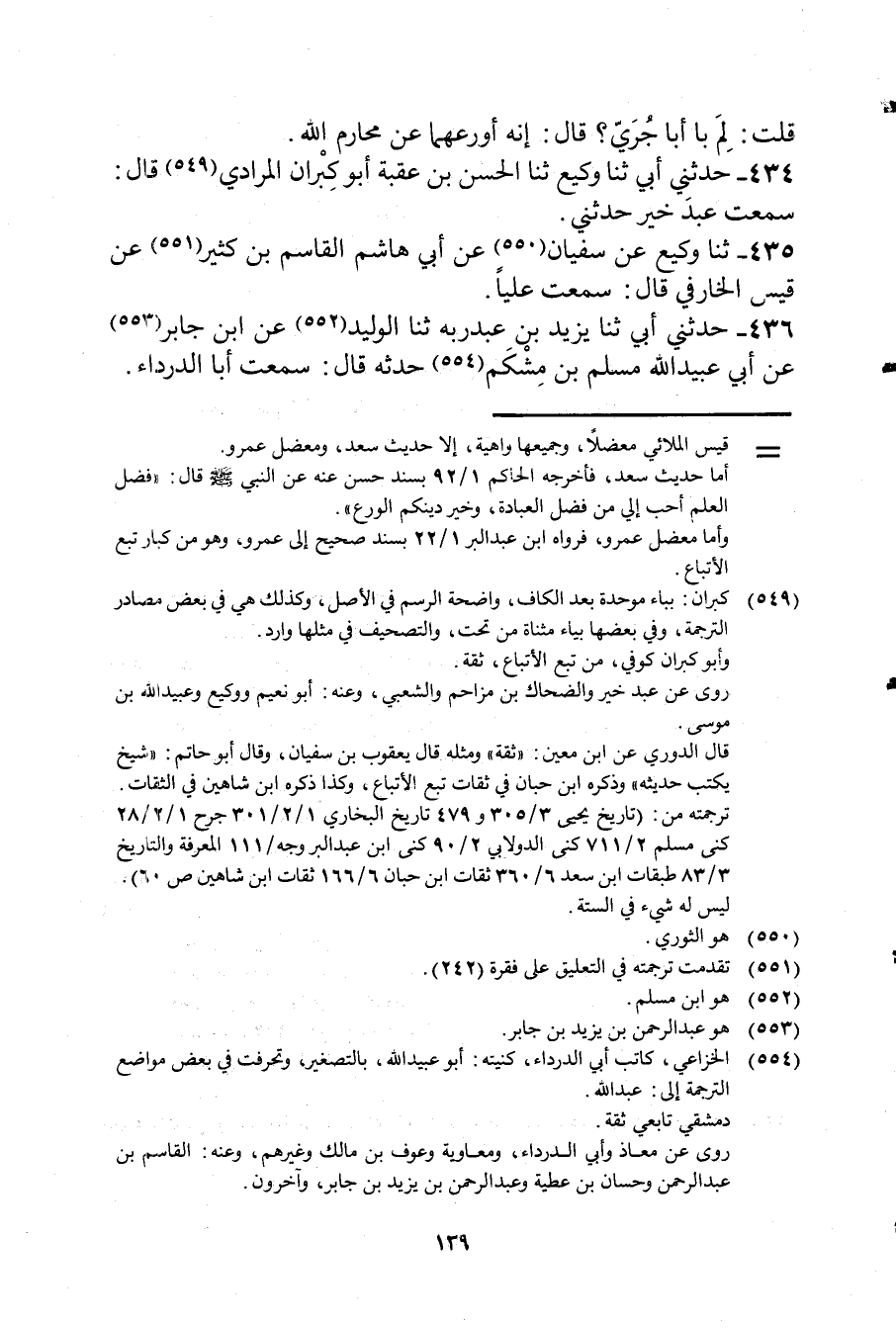 436 - حَدثنِي أبي ثَنَا يزِيد بن عبد ربه ثَنَا الْوَلِيد عَن بن جَابر عَن أبي عبيد الله مُسلم بن مشْكم حَدثهُ قَالَ سَمِعت أَبَا الدَّرْدَاء