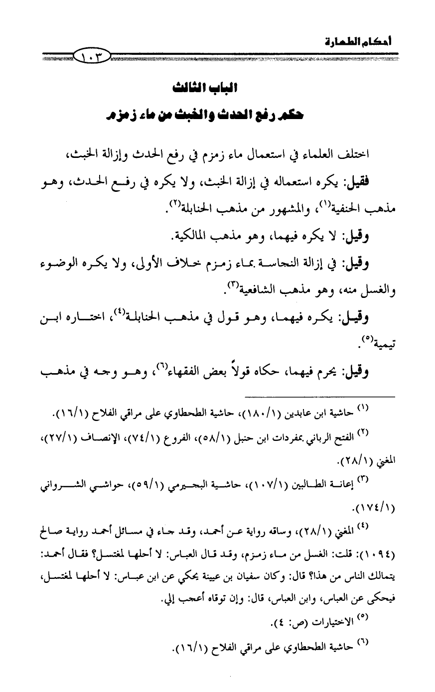 الباب الثالث حكم رفع الحدث والخبث من ماء زمزم