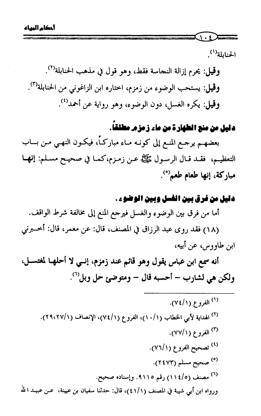 دليل من منع الطهارة من ماء زمزم مطلقاً.