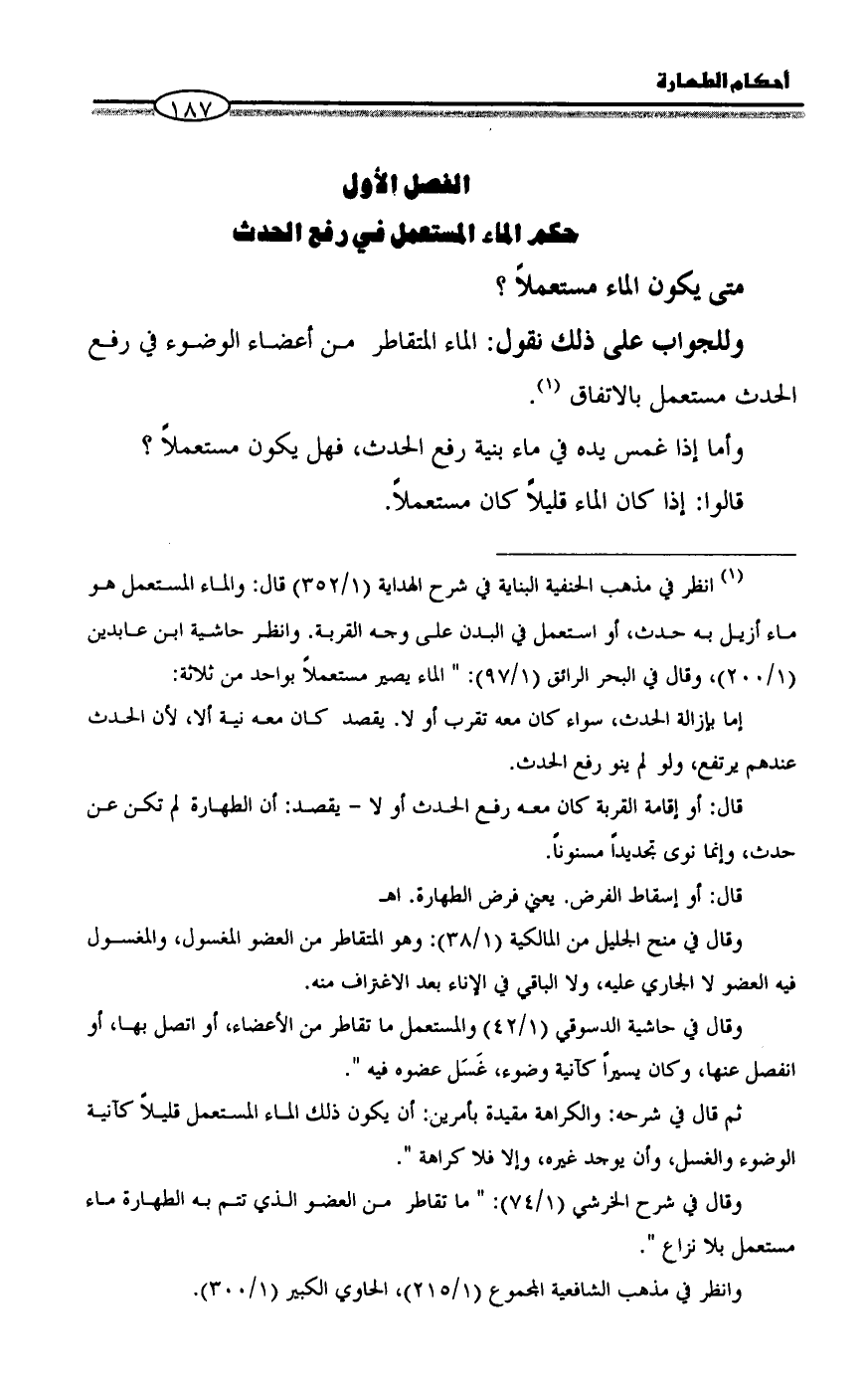 الفصل الأول حكم الماء المستعمل في رفع الحدث