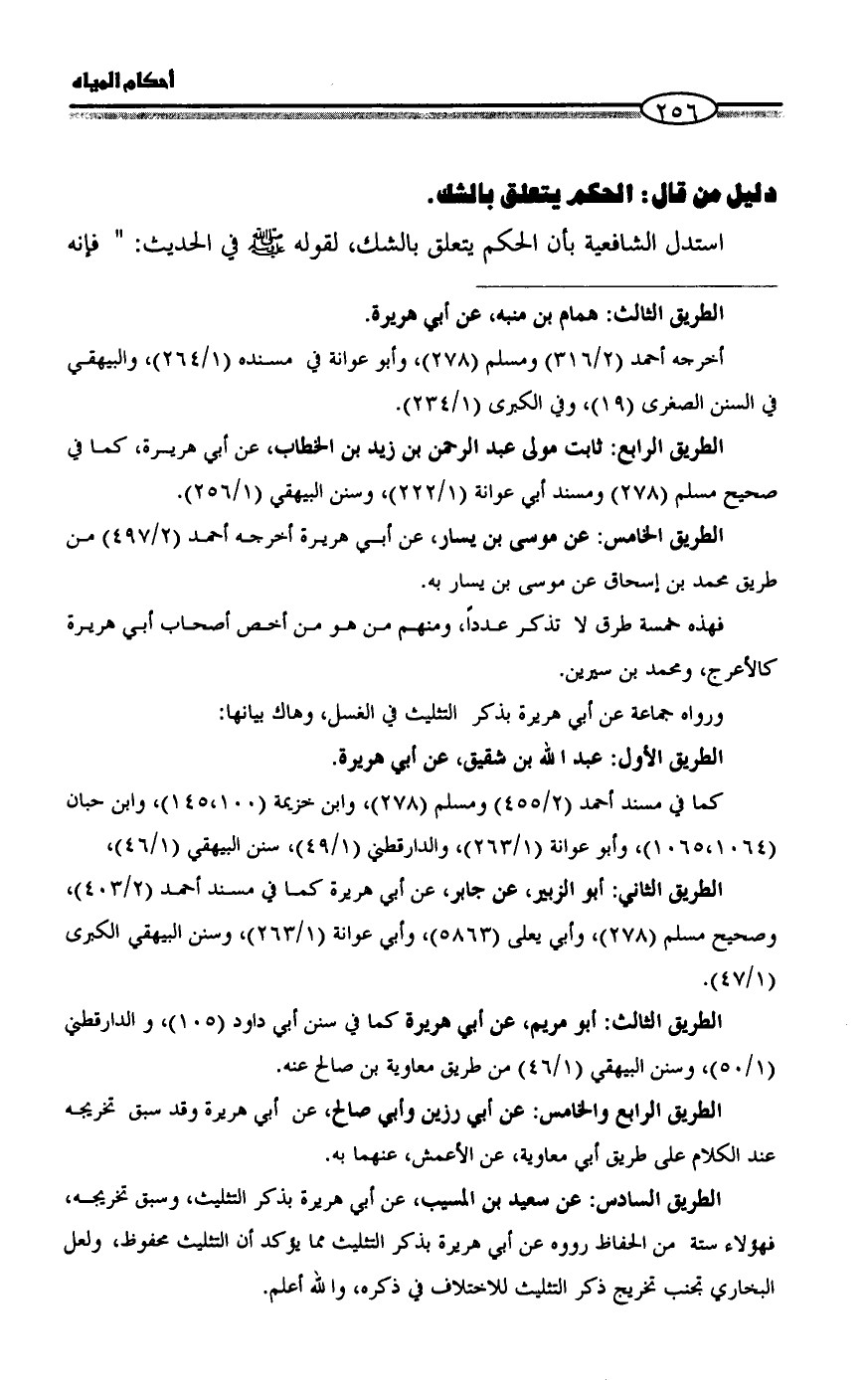 كما في مسند أحمد (2/ 455) ومسلم (278)، وابن خزيمة (100،145)، وابن حبان (1064،1065)، وأبو عوانة (1/ 263)، والدارقطني (1/ 49)، سنن البيهقي (1/ 46)،
