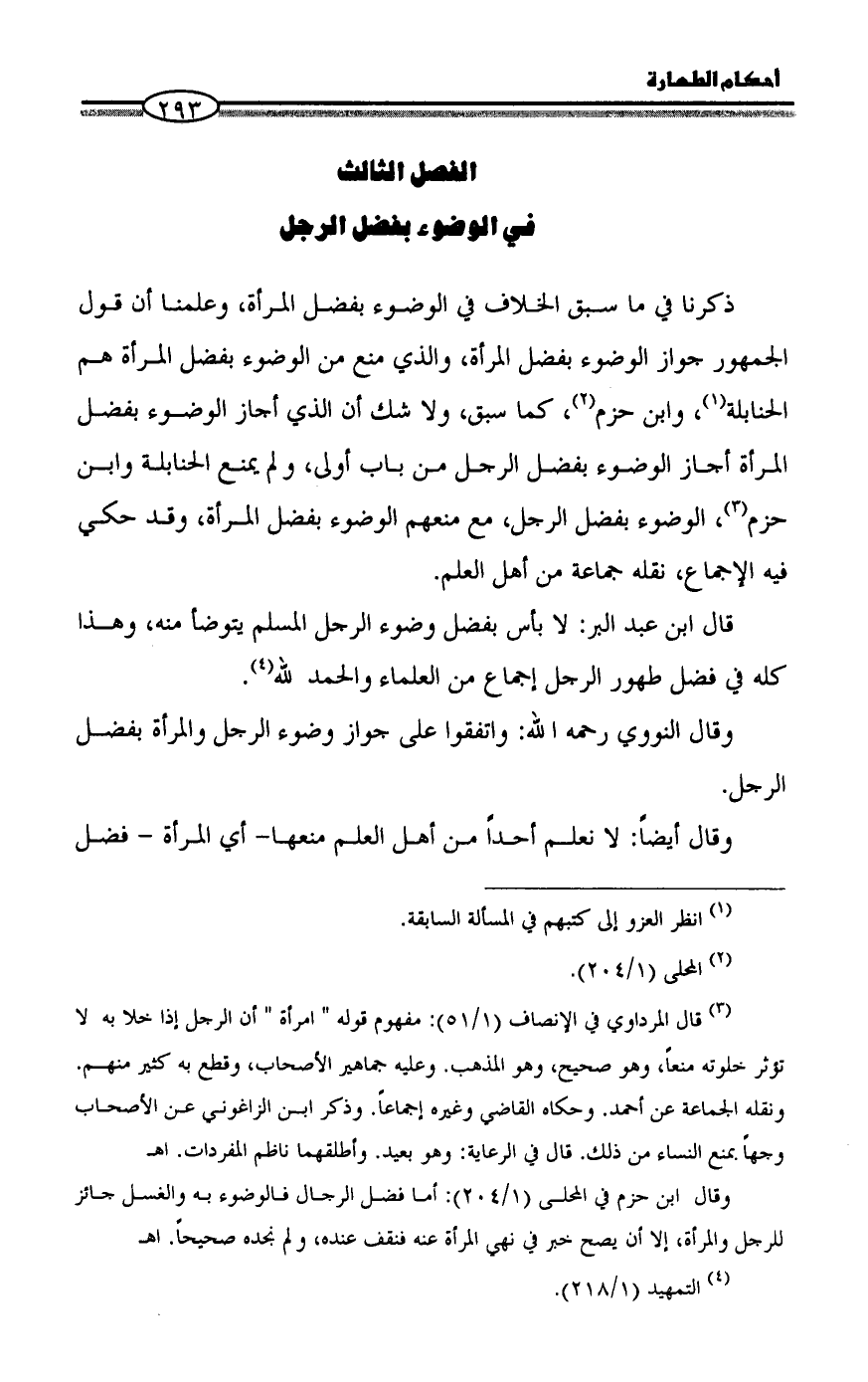 الفصل الثالث في الوضوء بفضل الرجل