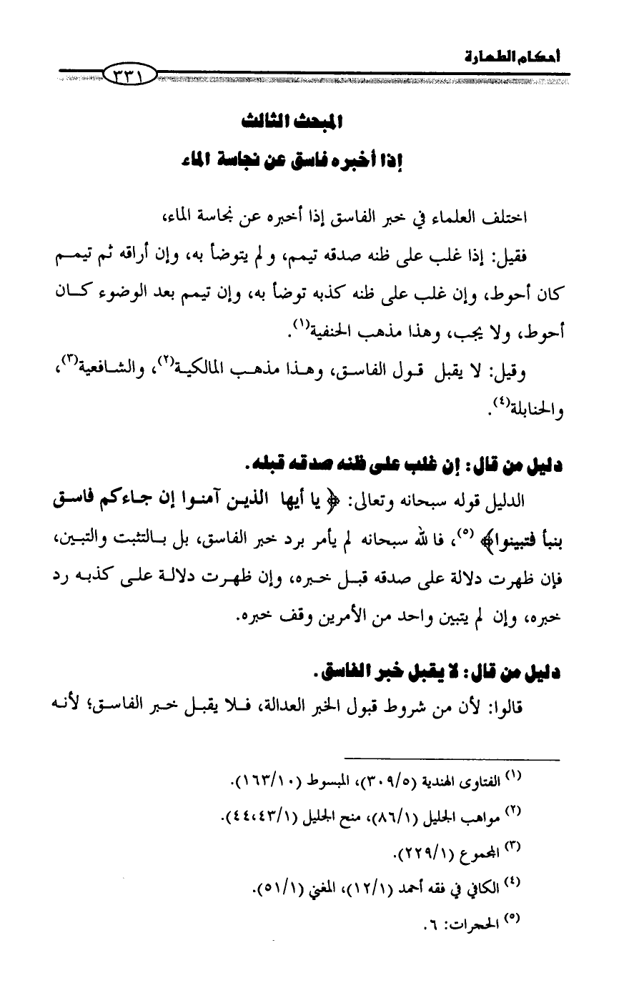 (¬4) الكافي في فقه أحمد (1/ 12)، المغني (1/ 51).
