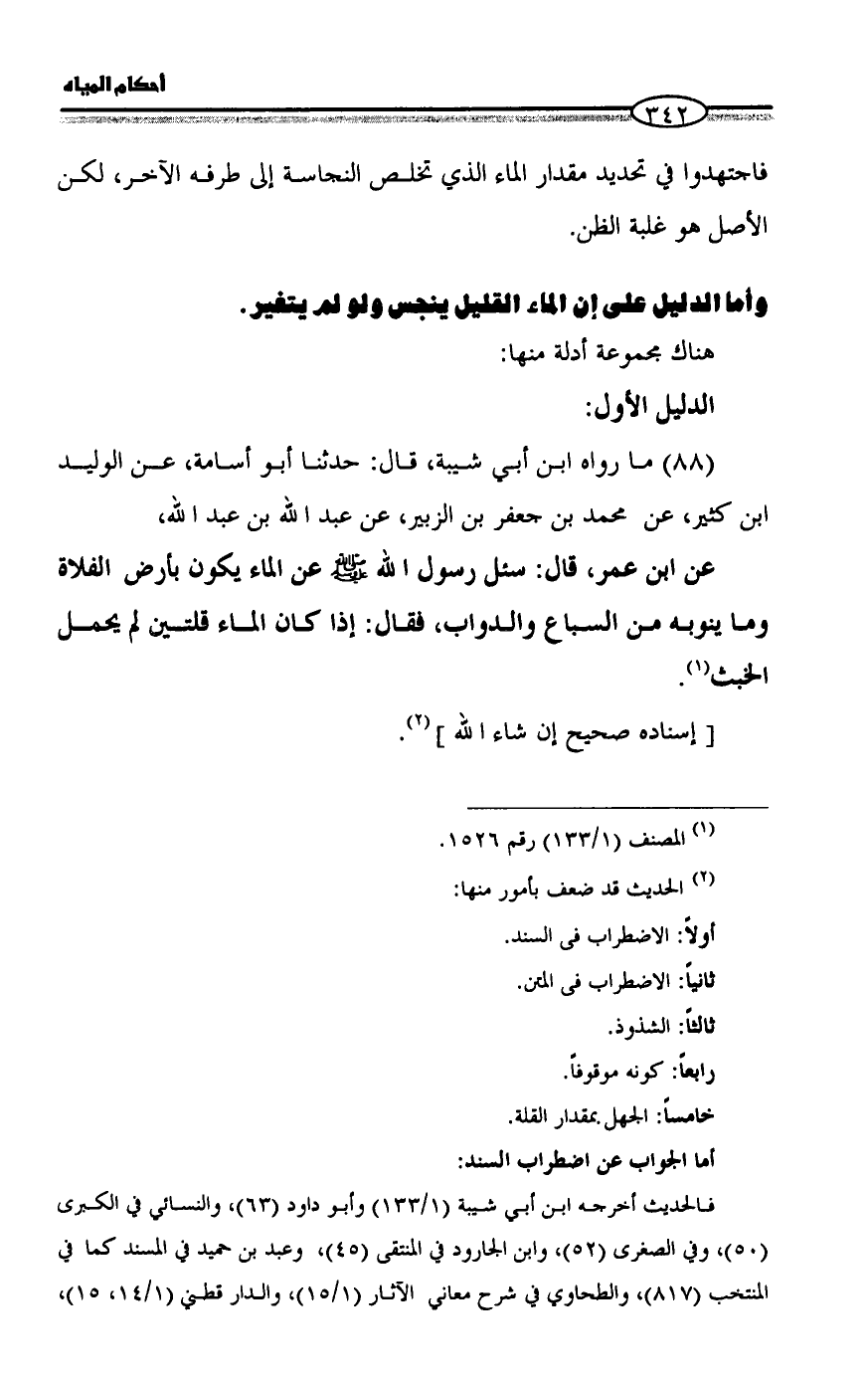 (88) ما رواه ابن أبي شيبة، قال: حدثنا أبو أسامة، عن الوليد بن كثير، عن محمد بن جعفر بن الزبير، عن عبد الله بن عبد الله،