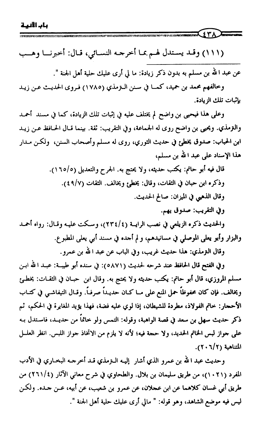= عن عبد الله بن مسلم به بدون ذكر زيادة: ما لي أرى عليك حلية أهل الجنة ".