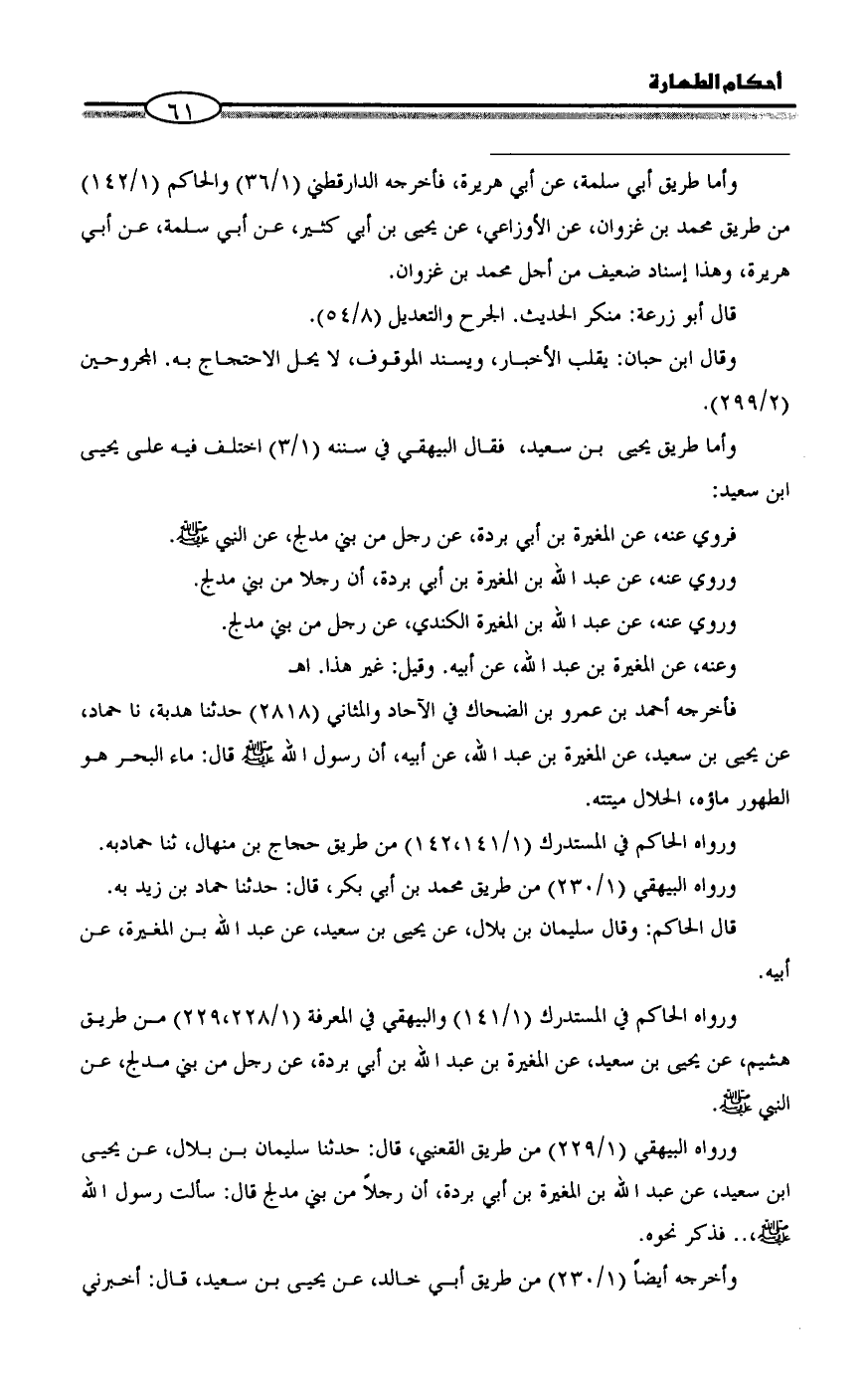 = وأما طريق أبي سلمة، عن أبي هريرة، فأخرجه الدارقطني (1/ 36) والحاكم (1/ 142) من طريق محمد بن غزوان، عن الأوزاعي، عن يحيى بن أبي كثير، عن أبي سلمة، عن أبي هريرة، وهذا إسناد ضعيف من أجل محمد بن غزوان.