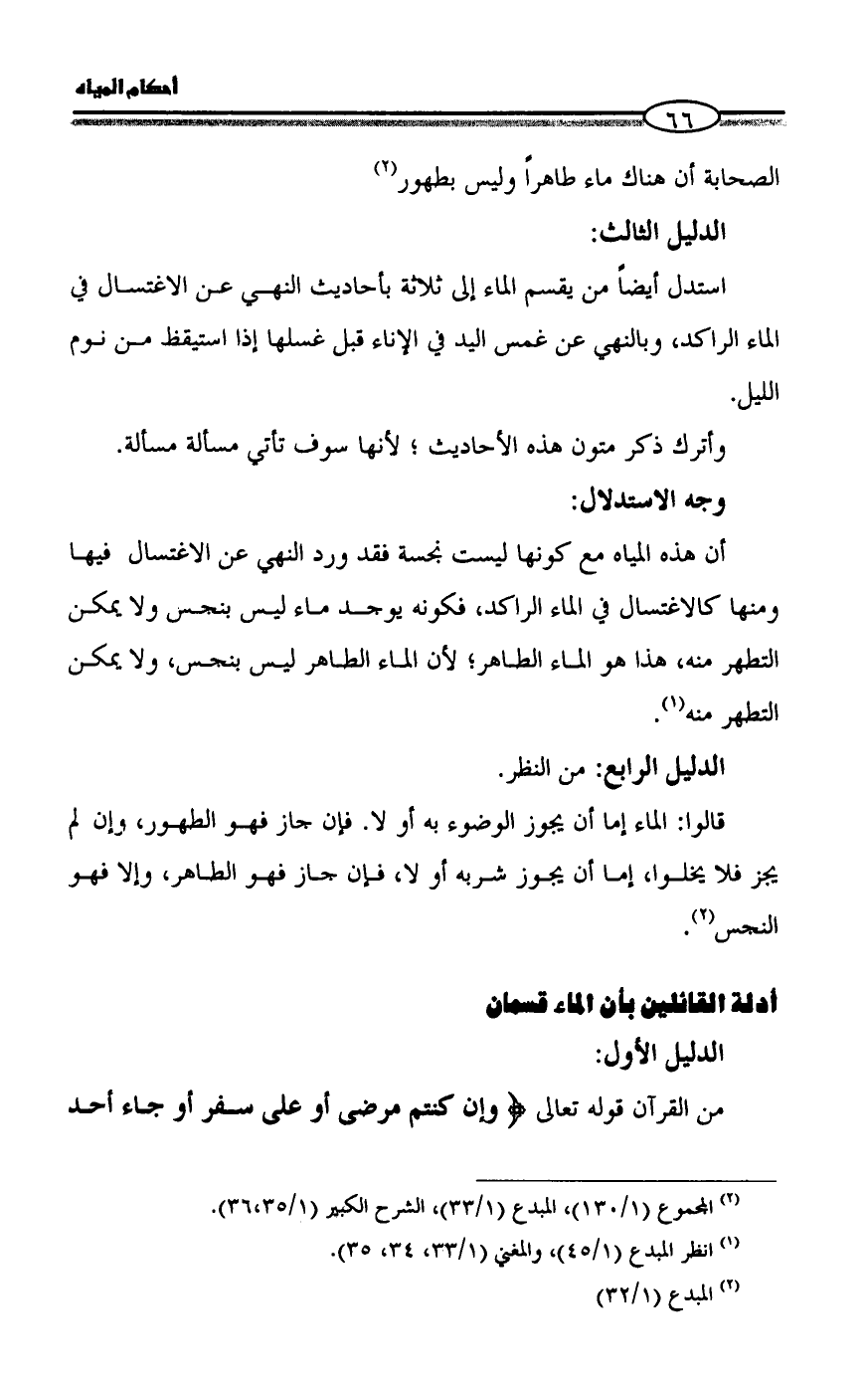 (¬2) انظر المبدع (1/ 45)، والمغني (1/ 33، 34، 35).