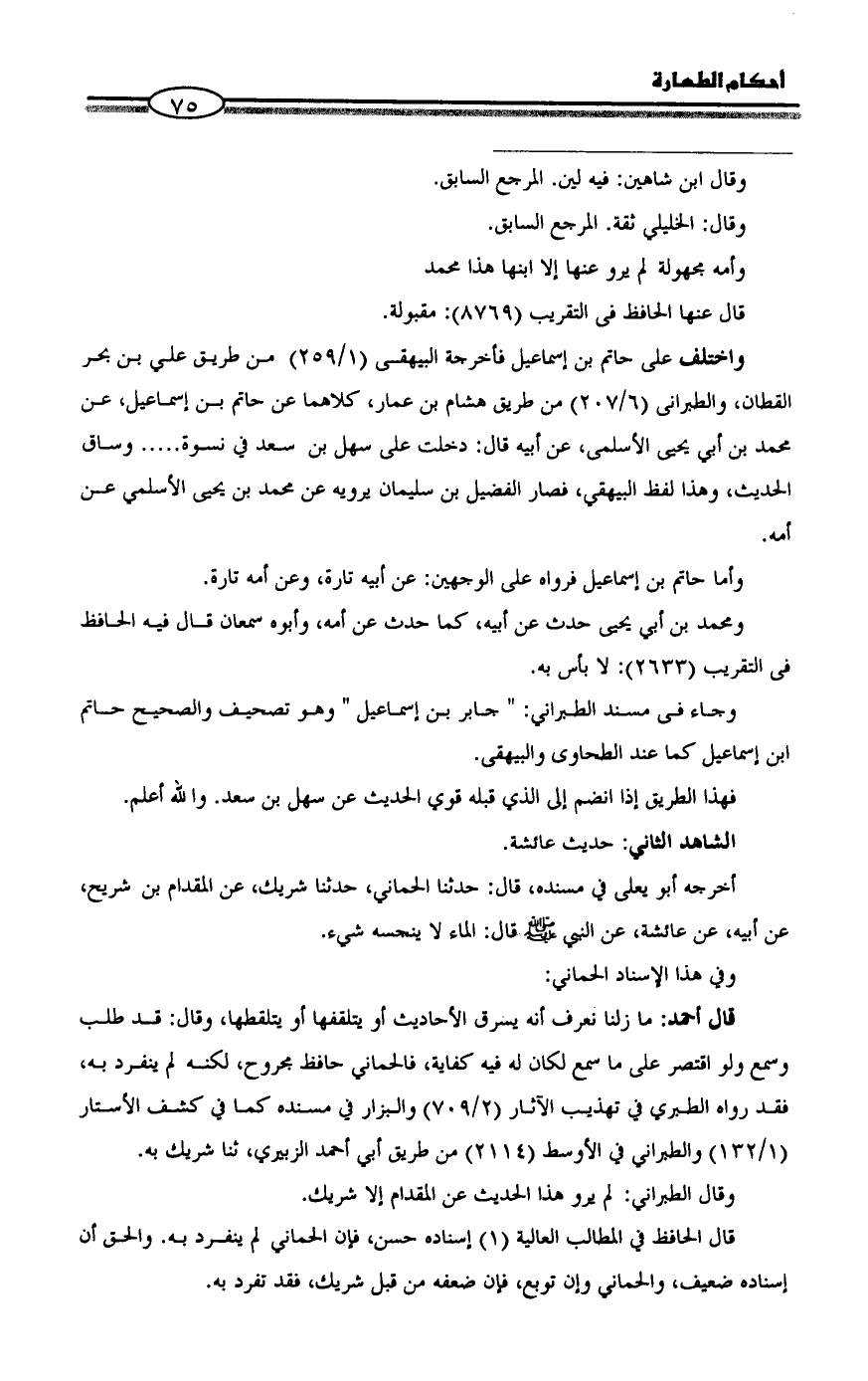 قال أحمد: ما زلنا نعرف أنه يسرق الأحاديث أو يتلقفها أو يتلقطها، وقال: قد طلب وسمع ولو اقتصر على ما سمع لكان له فيه كفاية، فالحماني حافظ مجروح، لكنه لم ينفرد به، فقد رواه الطبري في تهذيب الآثار (2/ 709) والبزار في مسنده كما في كشف الأستار (1/ 132) والطبراني في الأوسط (2114) من طريق أبي أحمد الزبيري، ثنا شريك به.