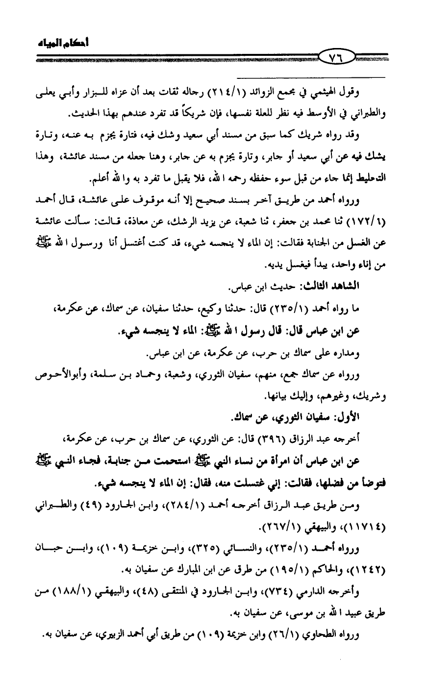 عن ابن عباس قال: قال رسول الله - صلى الله عليه وسلم -: الماء لا ينجسه شيء.
