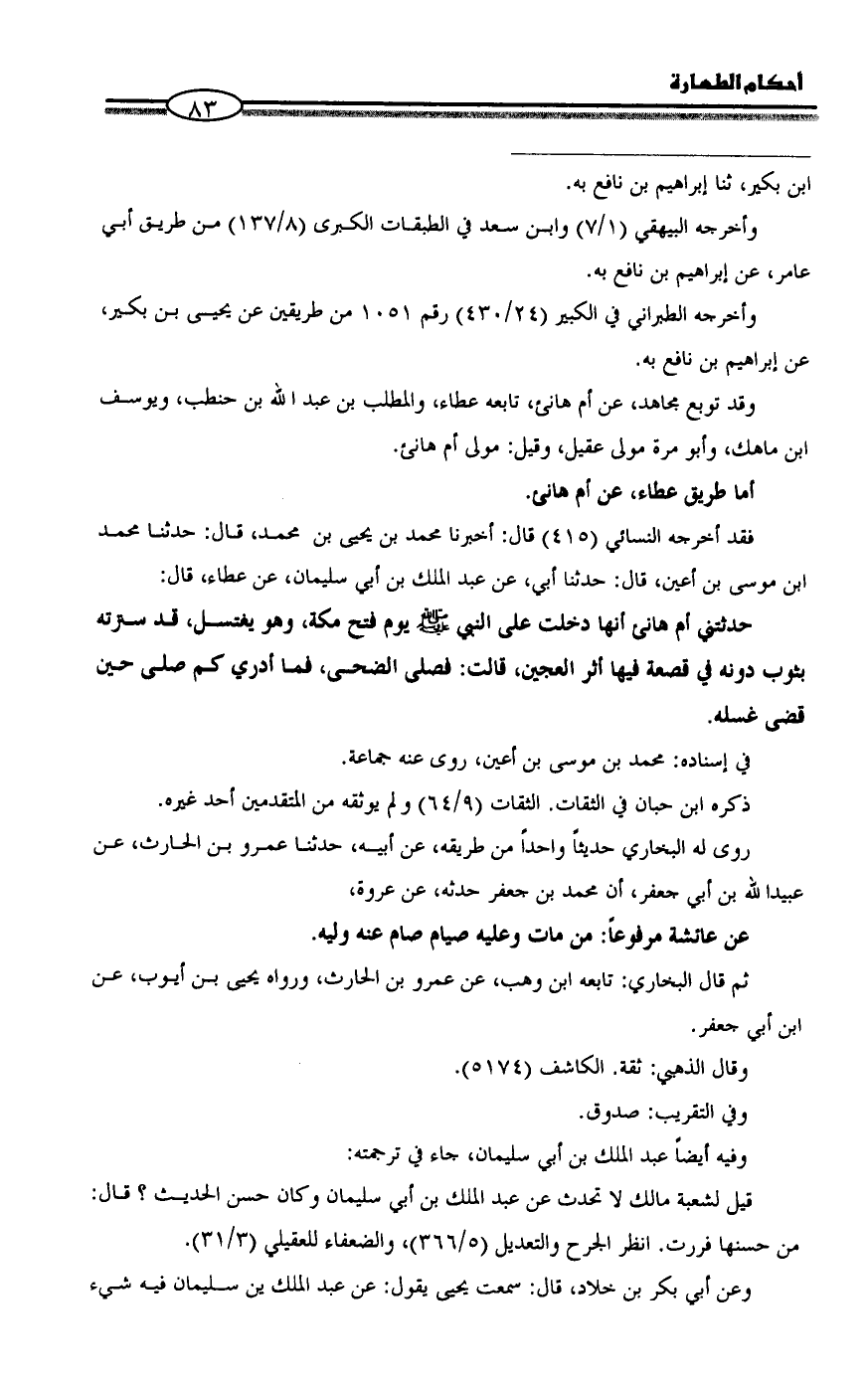أما طريق عطاء، عن أم هانئ.