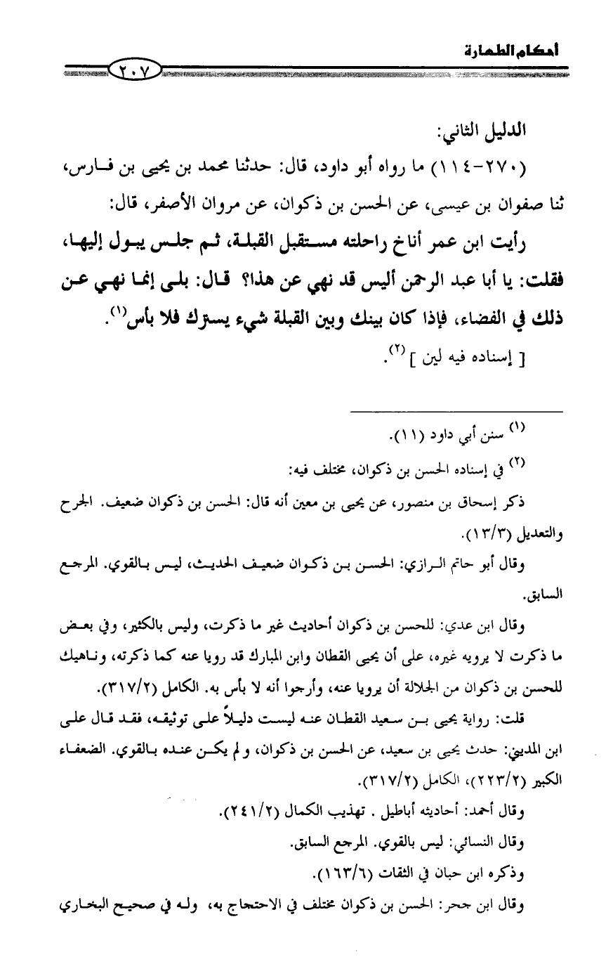 (270 - 114) ما رواه أبو داود، قال: حدثنا محمد بن يحيى بن فارس، ثنا صفوان بن عيسى، عن الحسن بن ذكوان، عن مروان الأصفر، قال: