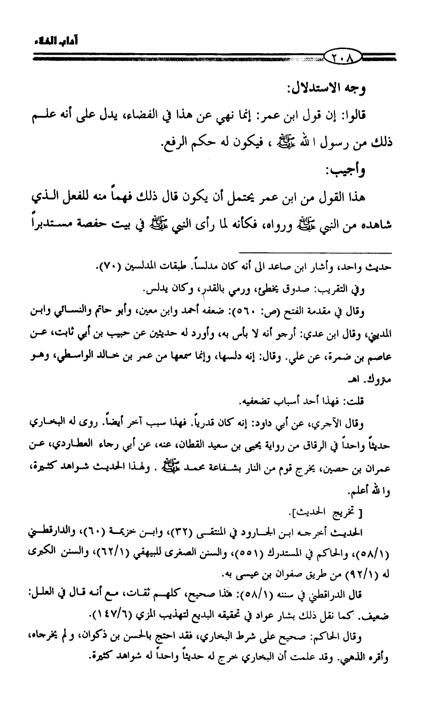قالوا: إن قول ابن عمر: إنما نهي عن هذا في الفضاء، يدل على أنه علم ذلك من رسول الله - صلى الله عليه وسلم -، فيكون له حكم الرفع.
