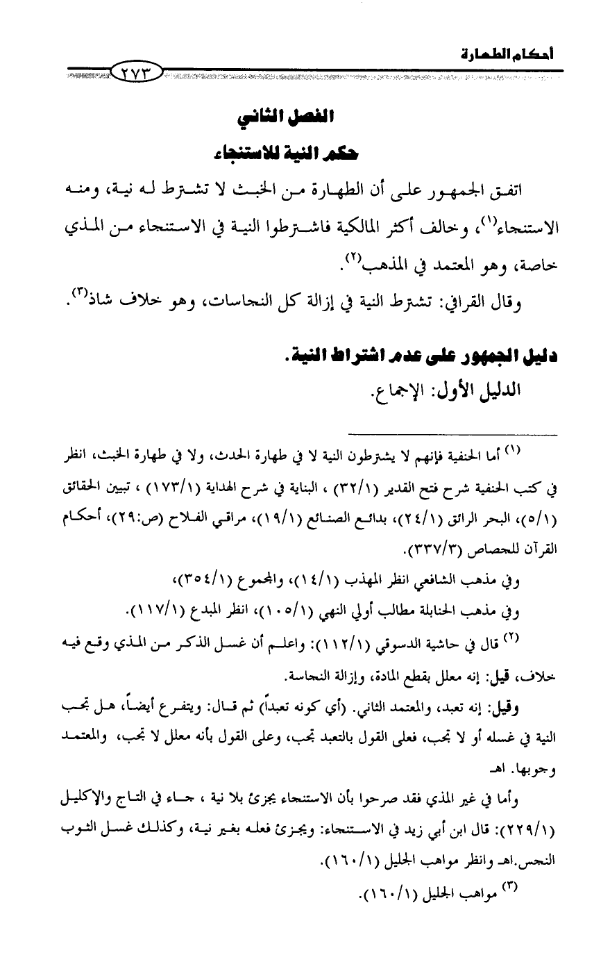 الفصل الثاني حكم النية للاستنجاء