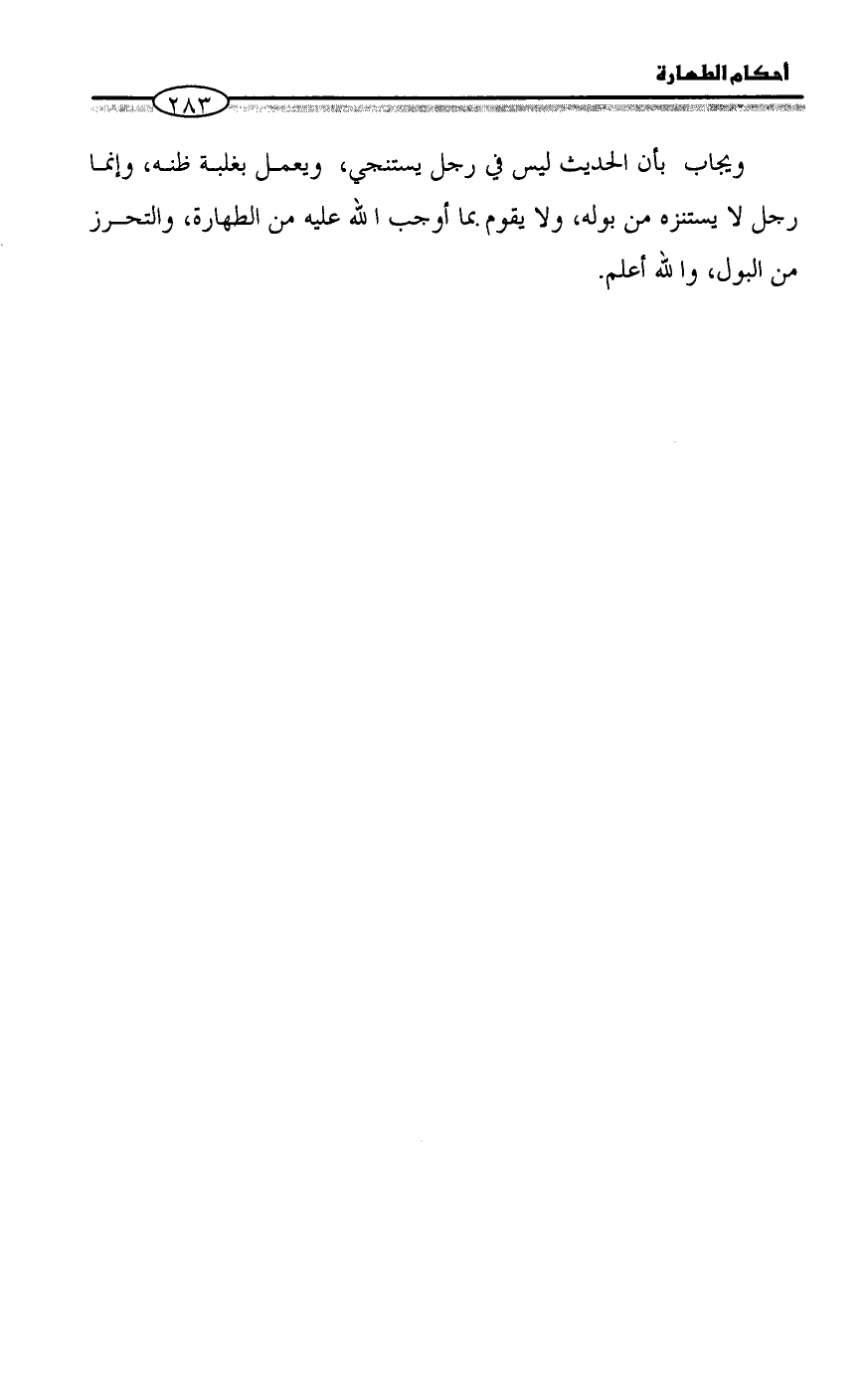 ويجاب بأن الحديث ليس في رجل يستنجي، ويعمل بغلبة ظنه، وإنما رجل لا يستنزه من بوله، ولا يقوم بما أوجب الله عليه من الطهارة، والتحرز من البول، والله أعلم.