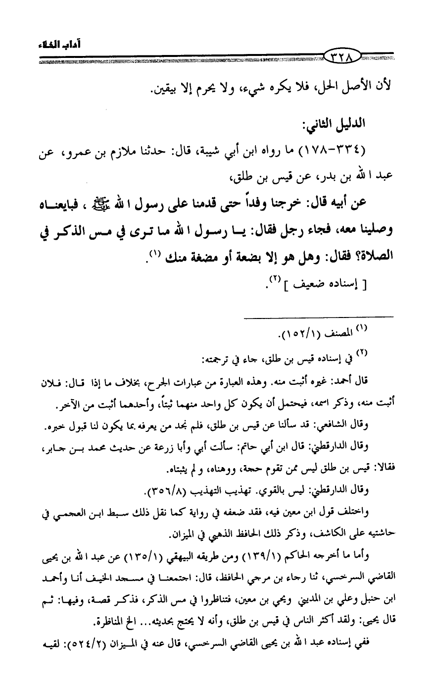 (334 - 178) ما رواه ابن أبي شيبة، قال: حدثنا ملازم بن عمرو، عن عبد الله بن بدر، عن قيس بن طلق،