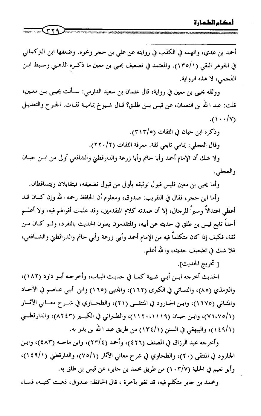 = أحمد بن عدي، واتهمه في الكذب في روايته عن علي بن حجر ونحوه. وضعفها ابن التركماني في الجوهر النقي (1/ 135). والمعتمد في تضعيف يحيى بن معين ما ذكره الذهبي وسبط ابن العجمي، لا هذه الرواية.