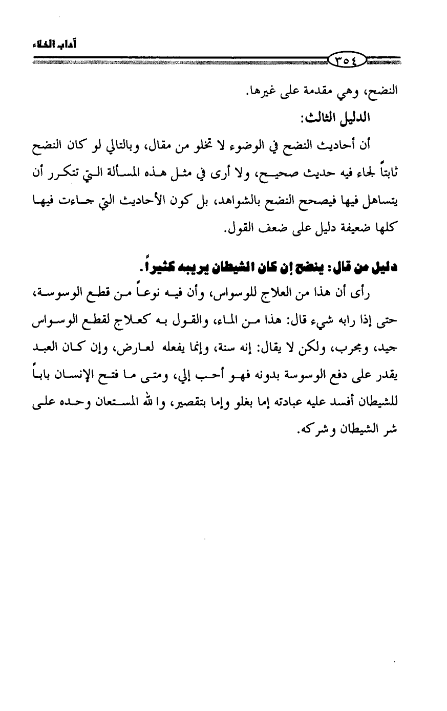 دليل من قال: ينضح إن كان الشيطان يريبه كثيراً.