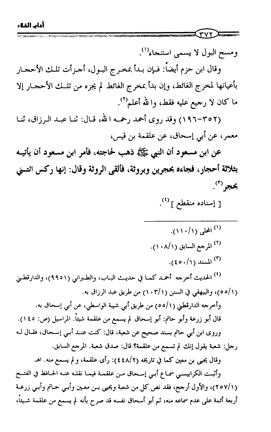 (351 - 195) وقد روى أحمد رحمه الله، قال: ثنا عبد الرزاق، ثنا معمر، عن أبي إسحاق، عن علقمة بن قيس،