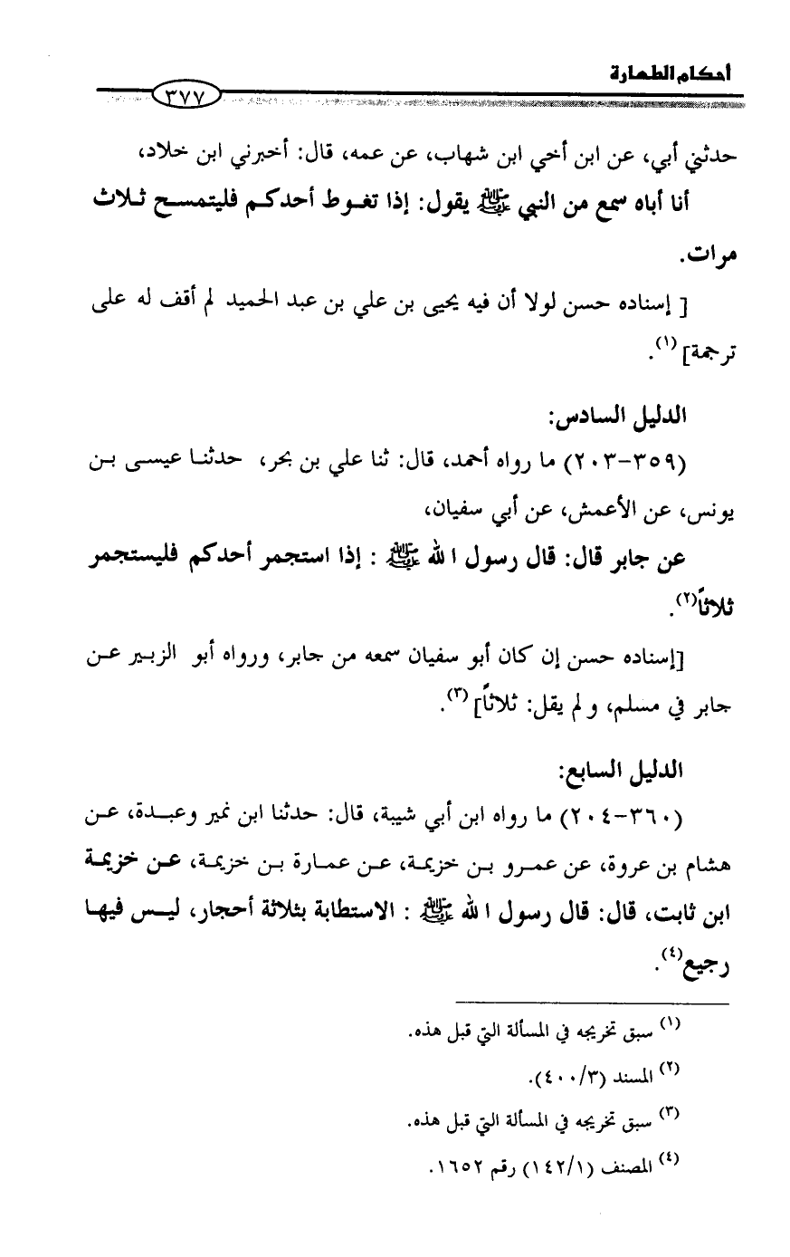 عن جابر قال: قال رسول الله - صلى الله عليه وسلم -: إذا استجمر أحدكم فليستجمر ثلاثاً (¬2).