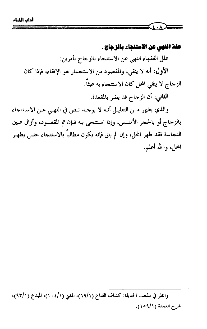 علل الفقهاء النهي عن الاستنجاء بالزجاج بأمرين: