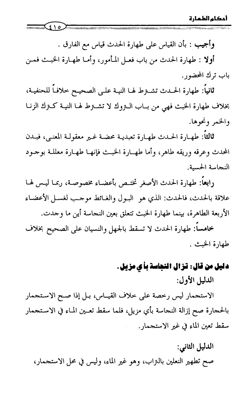 خامساً: طهارة الحدث لا تسقط بالجهل والنسيان على الصحيح بخلاف طهارة الخبث.