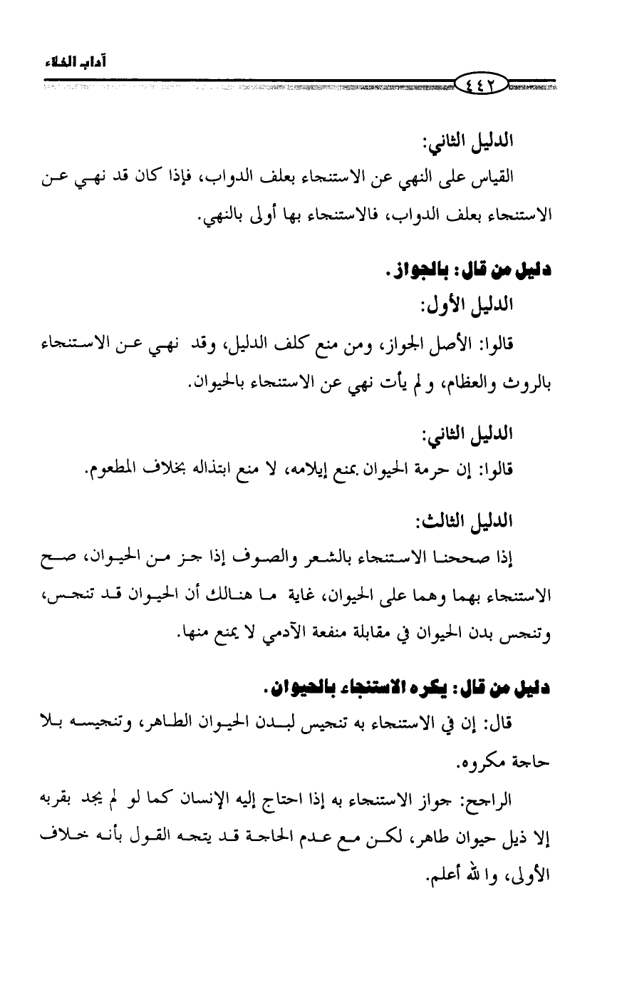 دليل من قال: يكره الاستنجاء بالحيوان.