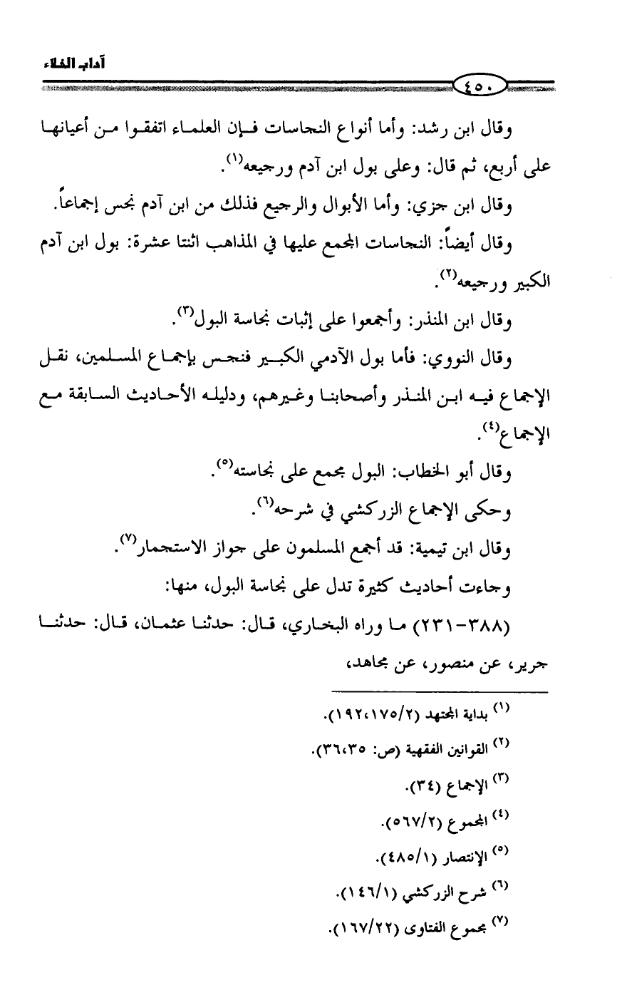 وقال ابن المنذر: وأجمعوا على إثبات نجاسة البول (¬3).