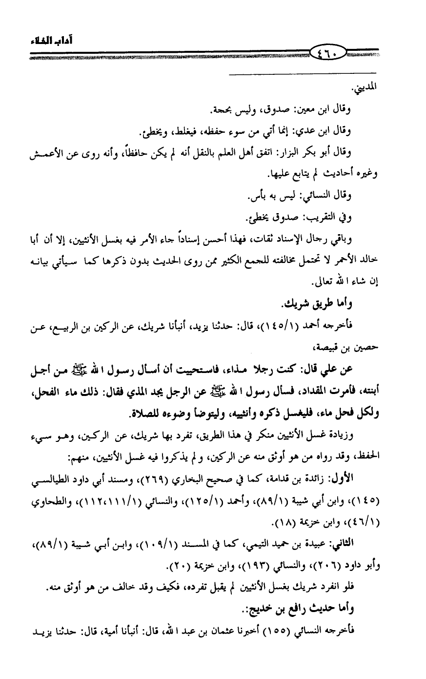 وباقي رجال الإسناد ثقات، فهذا أحسن إسناداً جاء الأمر فيه بغسل الأنثيين، إلا أن أبا خالد الأحمر لا تحتمل مخالفته للجمع الكثير ممن روى الحديث بدون ذكرها كما سيأتي بيانه إن شاء الله تعالى.