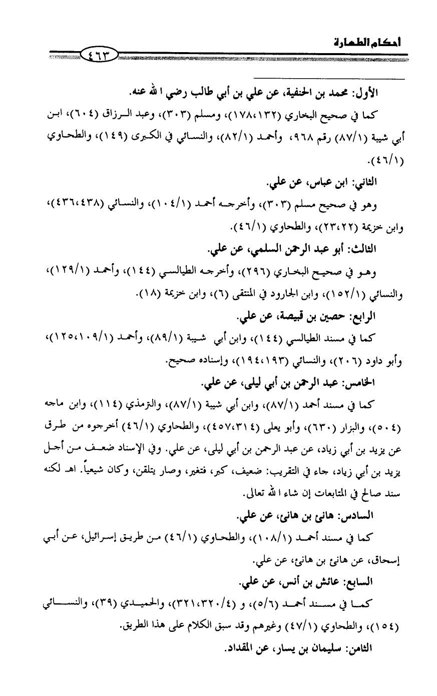 كما في مسند أحمد (1/ 87)، وابن أبي شيبة (1/ 87)، والترمذي (114)، وابن ماجه (504)، والبزار (630)، وأبو يعلى (314،457)، والطحاوي (1/ 46) أخرجوه من طرق عن يزيد بن أبي زياد، عن عبد الرحمن بن أبي ليلى، عن علي. وفي الإسناد ضعف من أجل يزيد بن أبي زياد، جاء في التقريب: ضعيف، كبر، فتغير، وصار يتلقن، وكان شيعياً. اهـ لكنه سند صالح في المتابعات إن شاء الله تعالى.