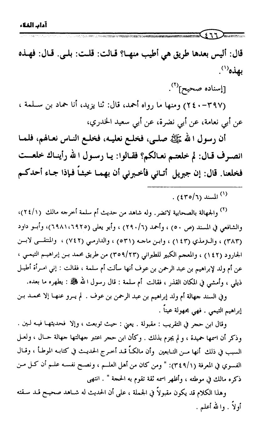 (395 - 239) ومنها ما رواه أحمد، قال: ثنا يزيد، أنا حماد بن سلمة، عن أبي نعامة، عن أبي نضرة، عن أبي سعيد الخدري،