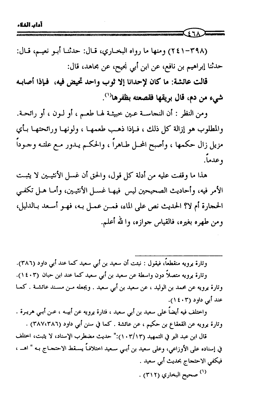 (396 - 240) ومنها ما رواه البخاري، قال: حدثنا أبو نعيم، قال: حدثنا إبراهيم بن نافع، عن ابن أبي نجيح، عن مجاهد، قال: