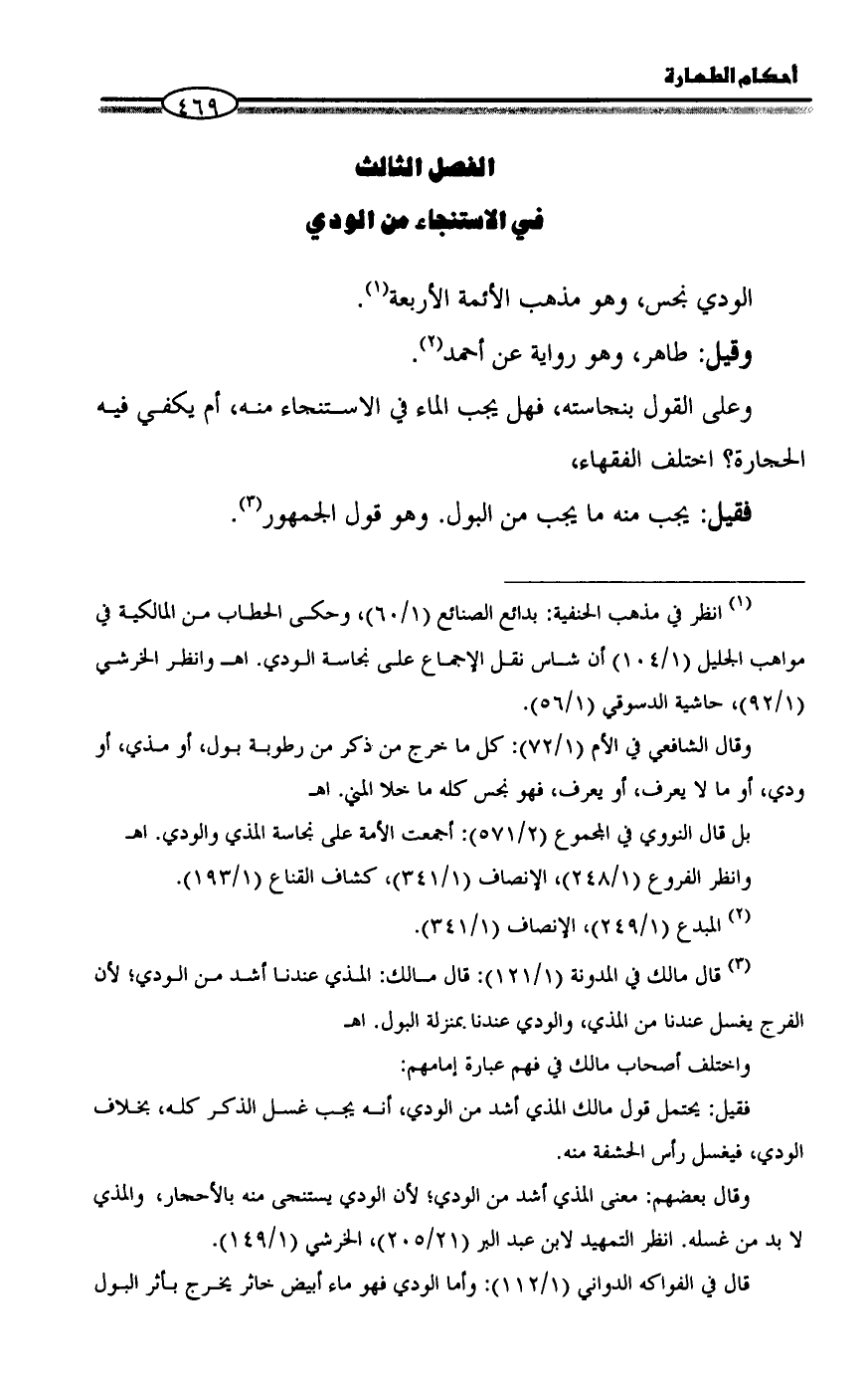 (¬1) انظر في مذهب الحنفية: بدائع الصنائع (1/ 60)، وحكى الحطاب من المالكية في مواهب الجليل (1/ 104) أن شاس نقل الإجماع على نجاسة الودي. اهـ وانظر الخرشي (1/ 92)، حاشية الدسوقي (1/ 56).