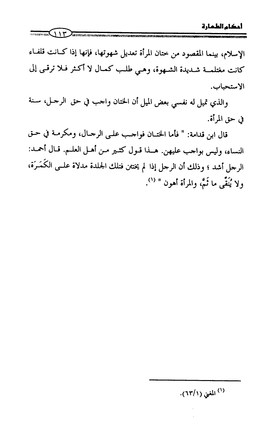 الإسلام، بينما المقصود من ختان المرأة تعديل شهوتها، فإنها إذا كانت قلفاء كانت مغتلمة شديدة الشهوة، وهي طلب كمال لا أكثر فلا ترقى إلى الاستحباب.