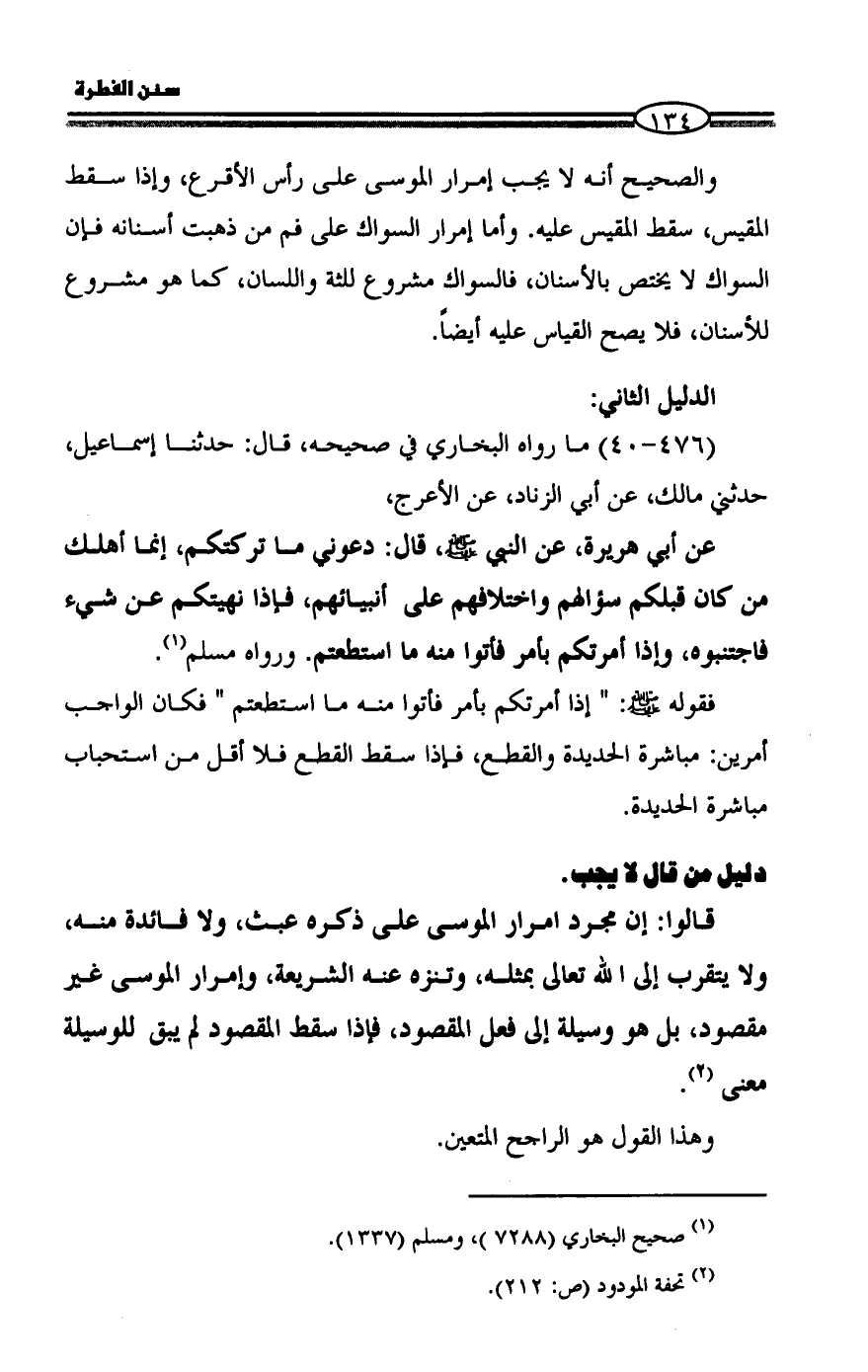 فقوله - صلى الله عليه وسلم -: " إذا أمرتكم بأمر فأتوا منه ما استطعتم " فكان الواجب أمرين: مباشرة الحديدة والقطع، فإذا سقط القطع فلا أقل من استحباب مباشرة الحديدة.