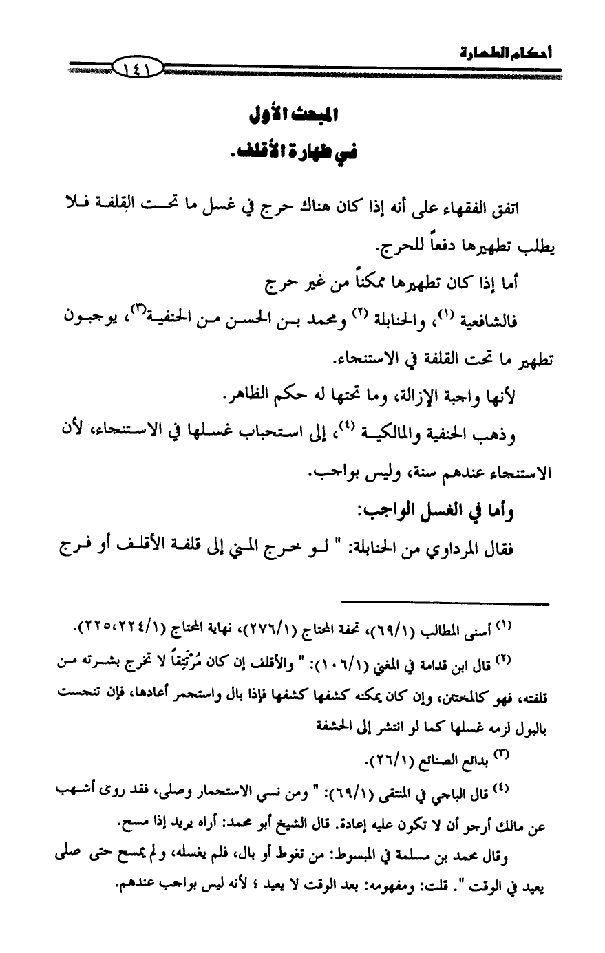 (¬1) أسنى المطالب (1/ 69)، تحفة المحتاج (1/ 276)، نهاية المحتاج (1/ 224،225).