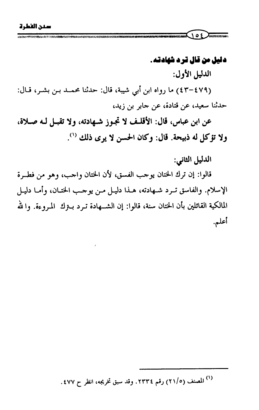 (479 - 43) ما رواه ابن أبي شيبة، قال: حدثنا محمد بن بشر، قال: حدثنا سعيد، عن قتادة، عن جابر بن زيد،