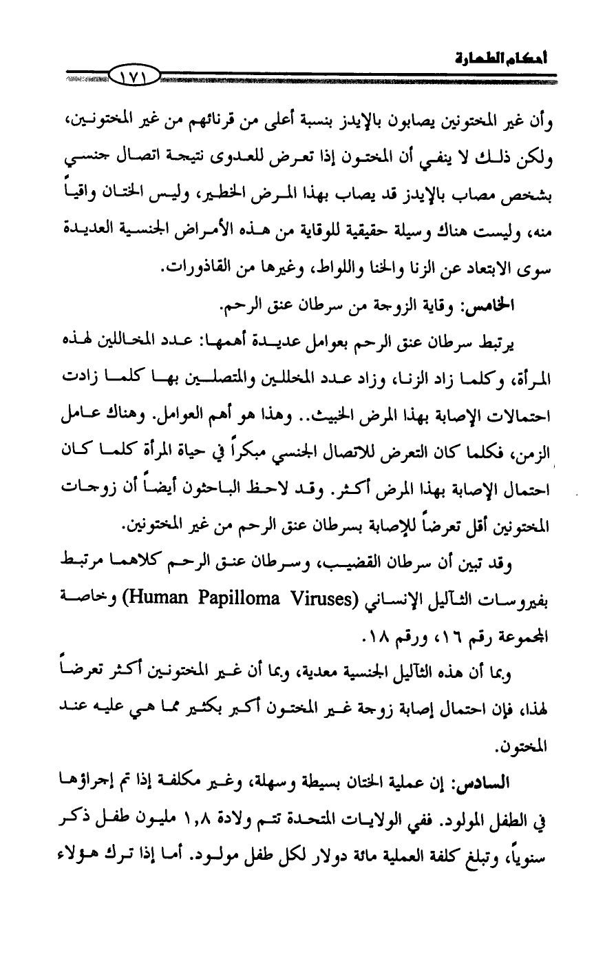 الخامس: وقاية الزوجة من سرطان عنق الرحم.