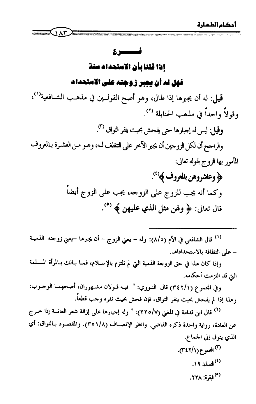 (¬1) قال الشافعي في الأم (5/ 8): وله - يعني الزوج - أن يجبرها -يعني زوجته الذمية - على النظافة بالاستحداد. اهـ