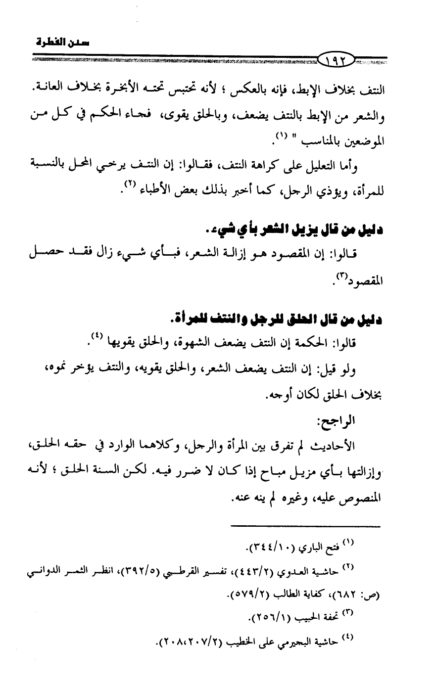 وأما التعليل على كراهة النتف، فقالوا: إن النتف يرخي المحل بالنسبة للمرأة، ويؤذي الرجل، كما أخبر بذلك بعض الأطباء (¬2).