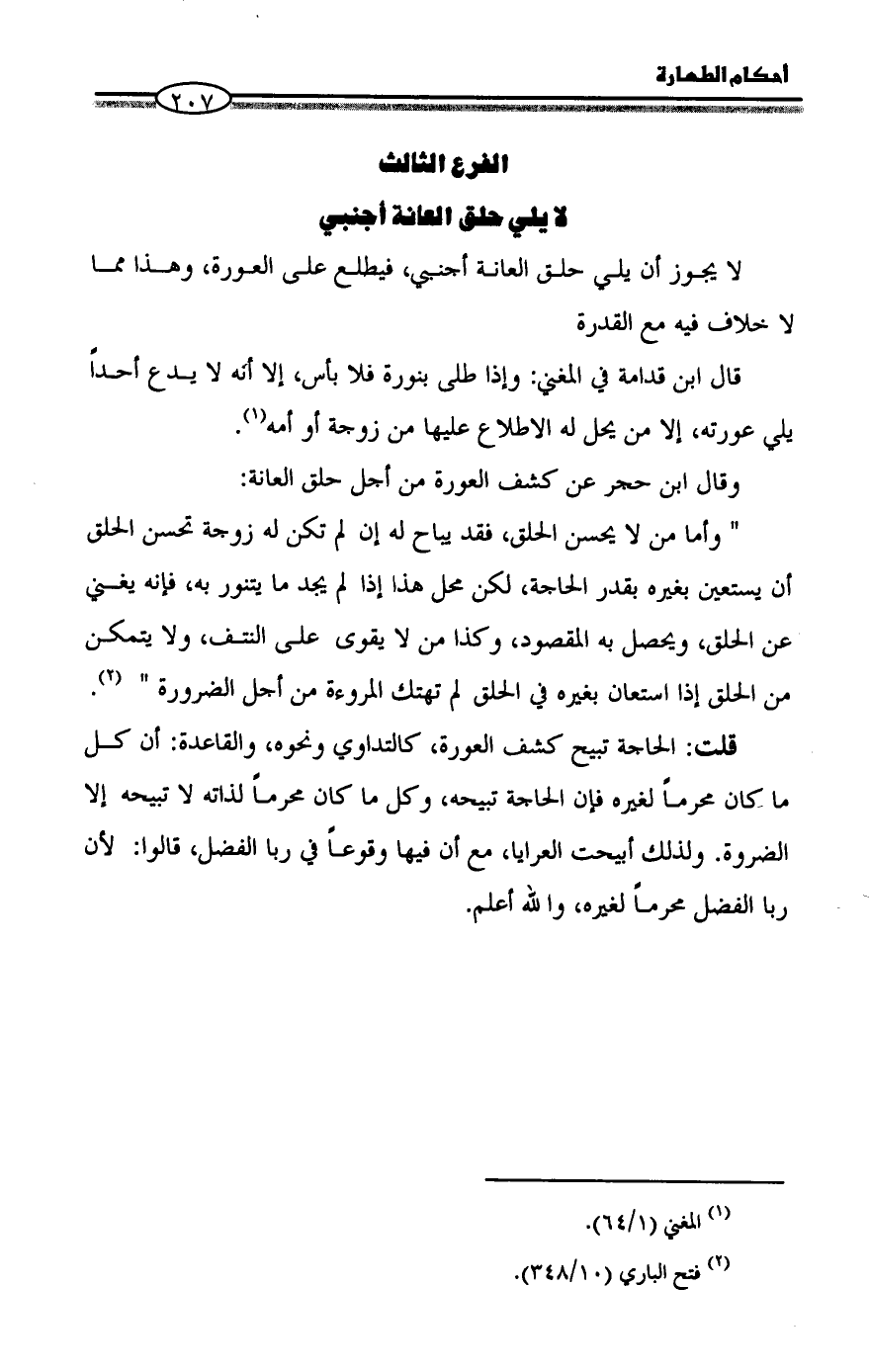 وقال ابن حجر عن كشف العورة من أجل حلق العانة:
