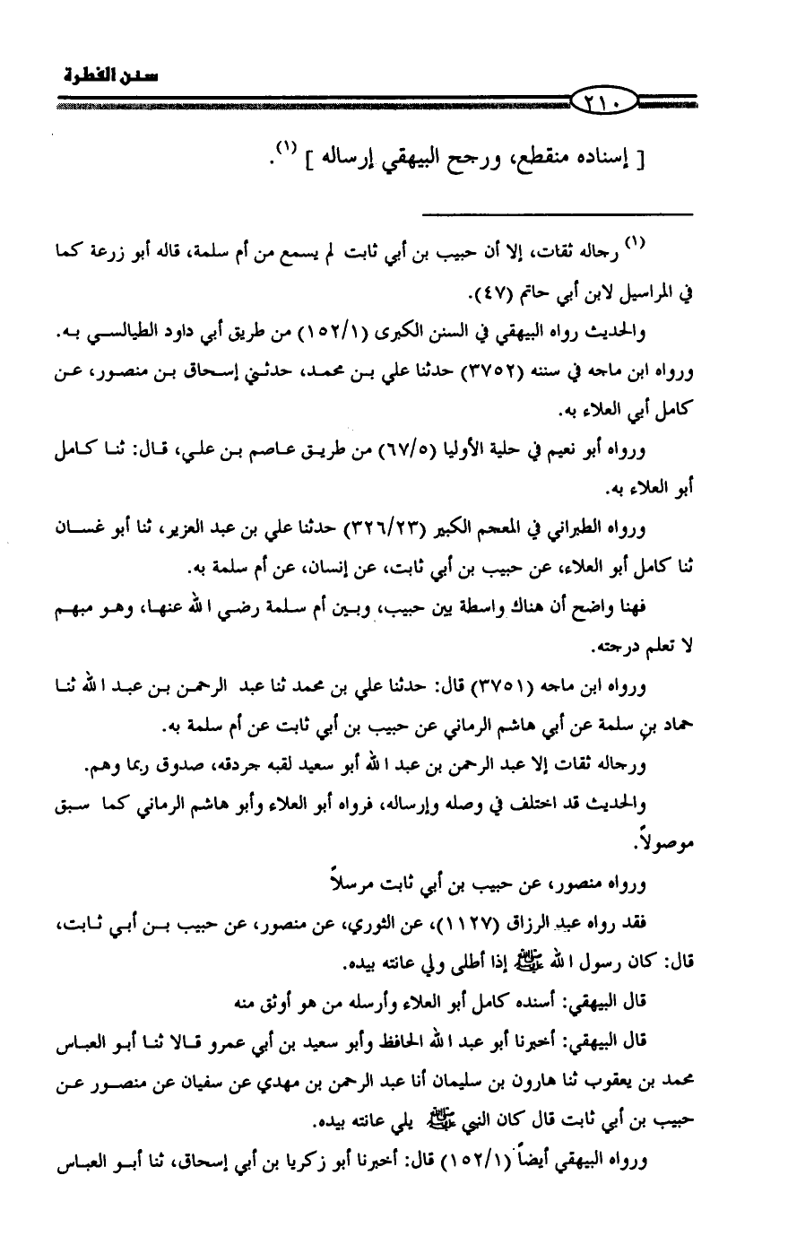 (¬1) رجاله ثقات، إلا أن حبيب بن أبي ثابت لم يسمع من أم سلمة، قاله أبو زرعة كما في المراسيل لابن أبي حاتم (47).