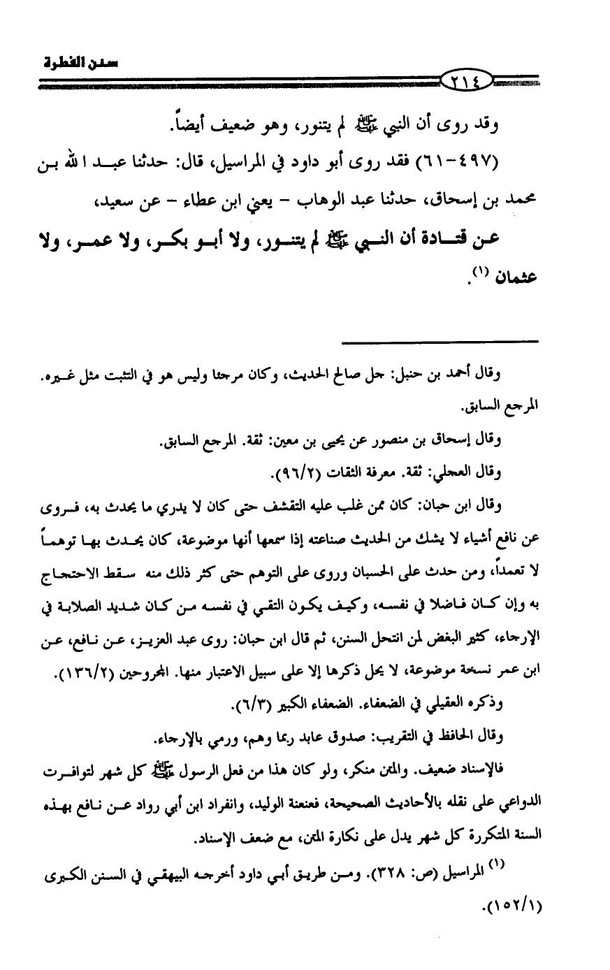 (¬1) المراسيل (ص: 328). ومن طريق أبي داود أخرجه البيهقي في السنن الكبرى (1/ 152).