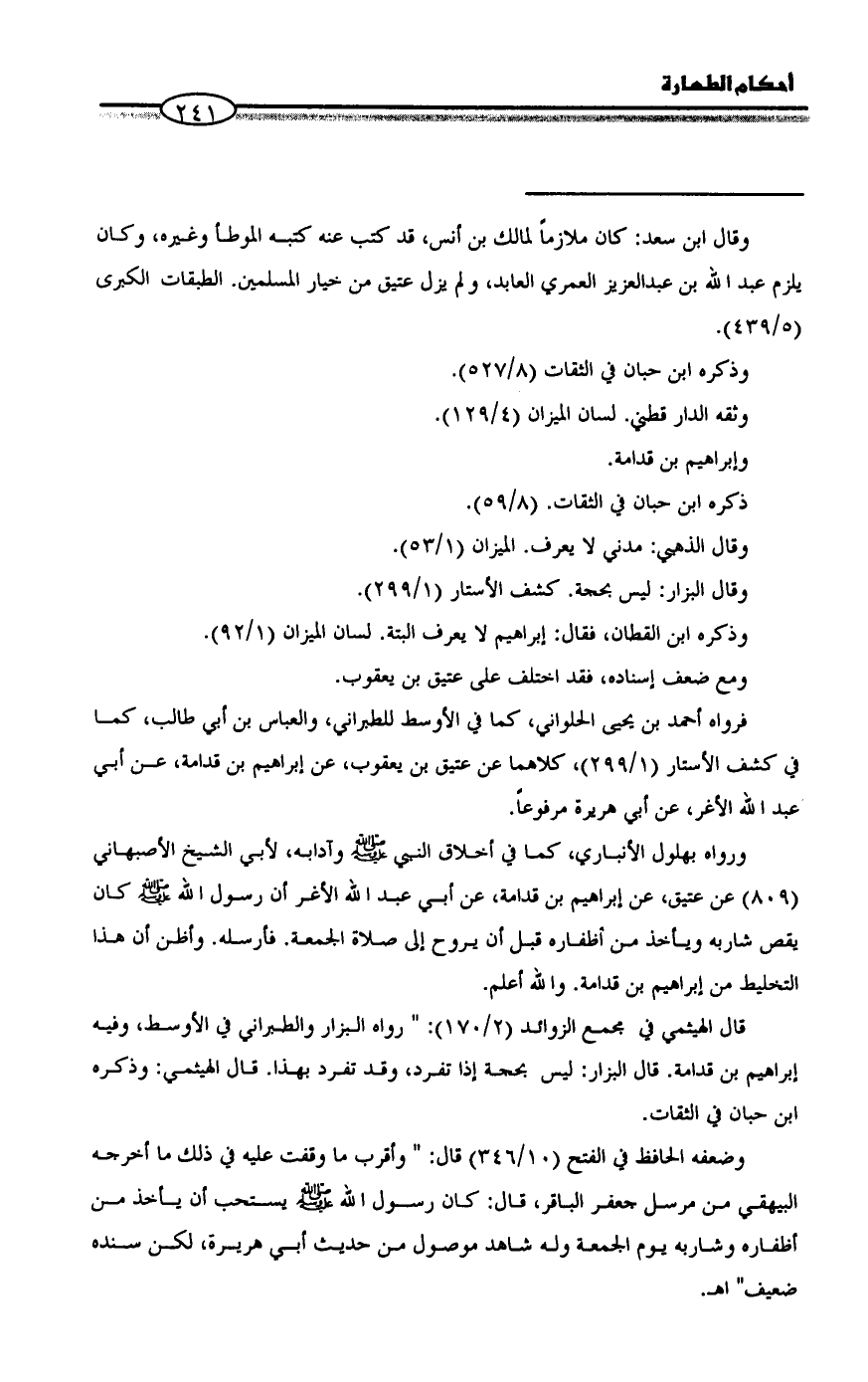 وذكره ابن القطان، فقال: إبراهيم لا يعرف البتة. لسان الميزان (1/ 92).
