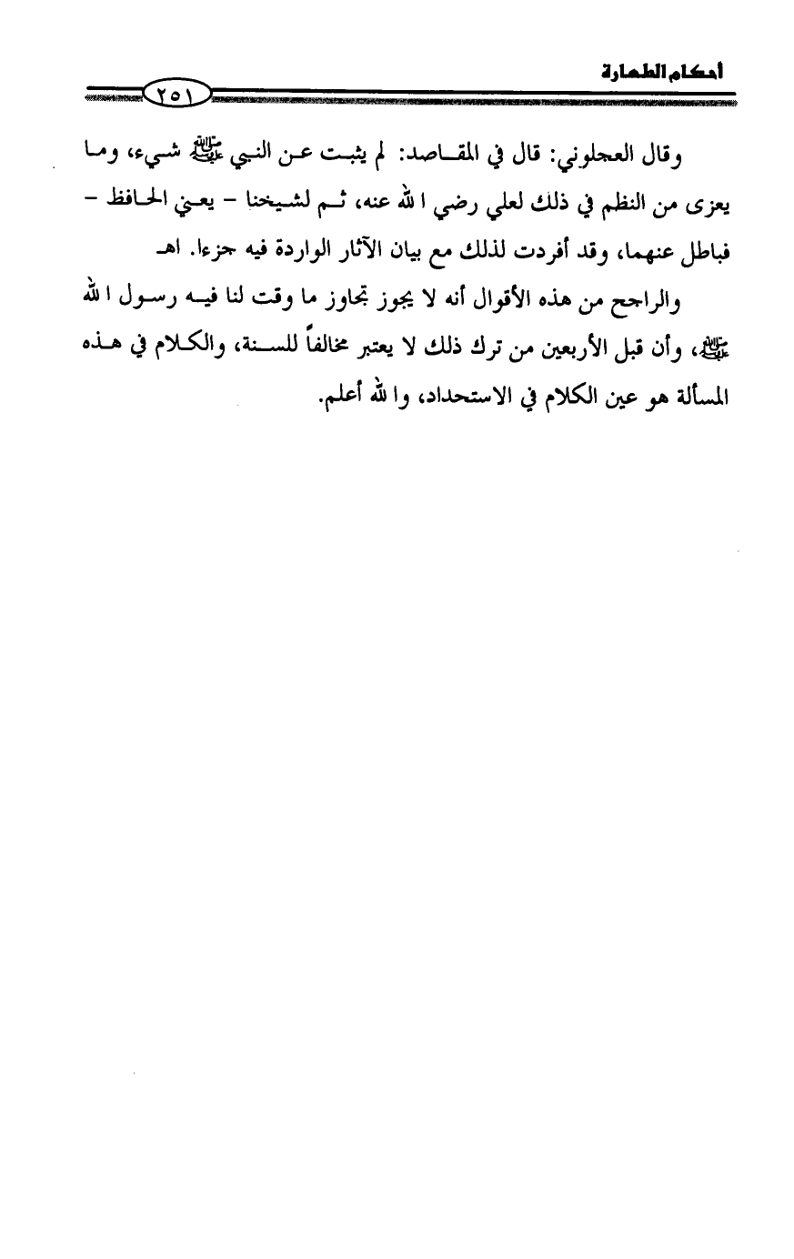 وقال العجلوني: قال في المقاصد: لم يثبت عن النبي - صلى الله عليه وسلم - شيء، وما يعزى من النظم في ذلك لعلي رضي الله عنه، ثم لشيخنا - يعني الحافظ - فباطل عنهما، وقد أفردت لذلك مع بيان الآثار الواردة فيه جزءا. اهـ
