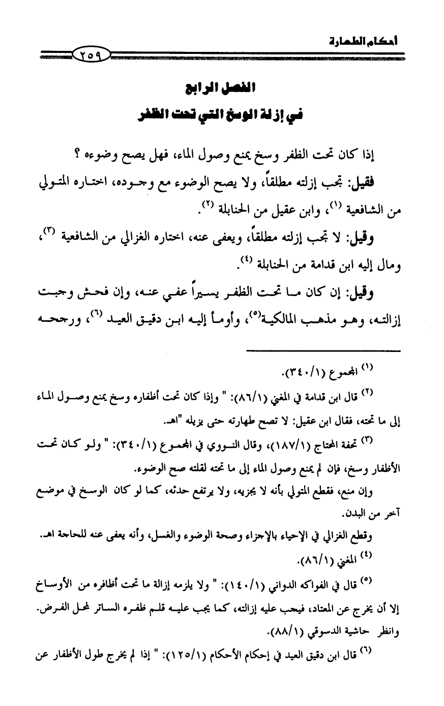 (¬6) قال ابن دقيق العيد في إحكام الأحكام (1/ 125): " إذا لم يخرج طول الأظفار عن =
