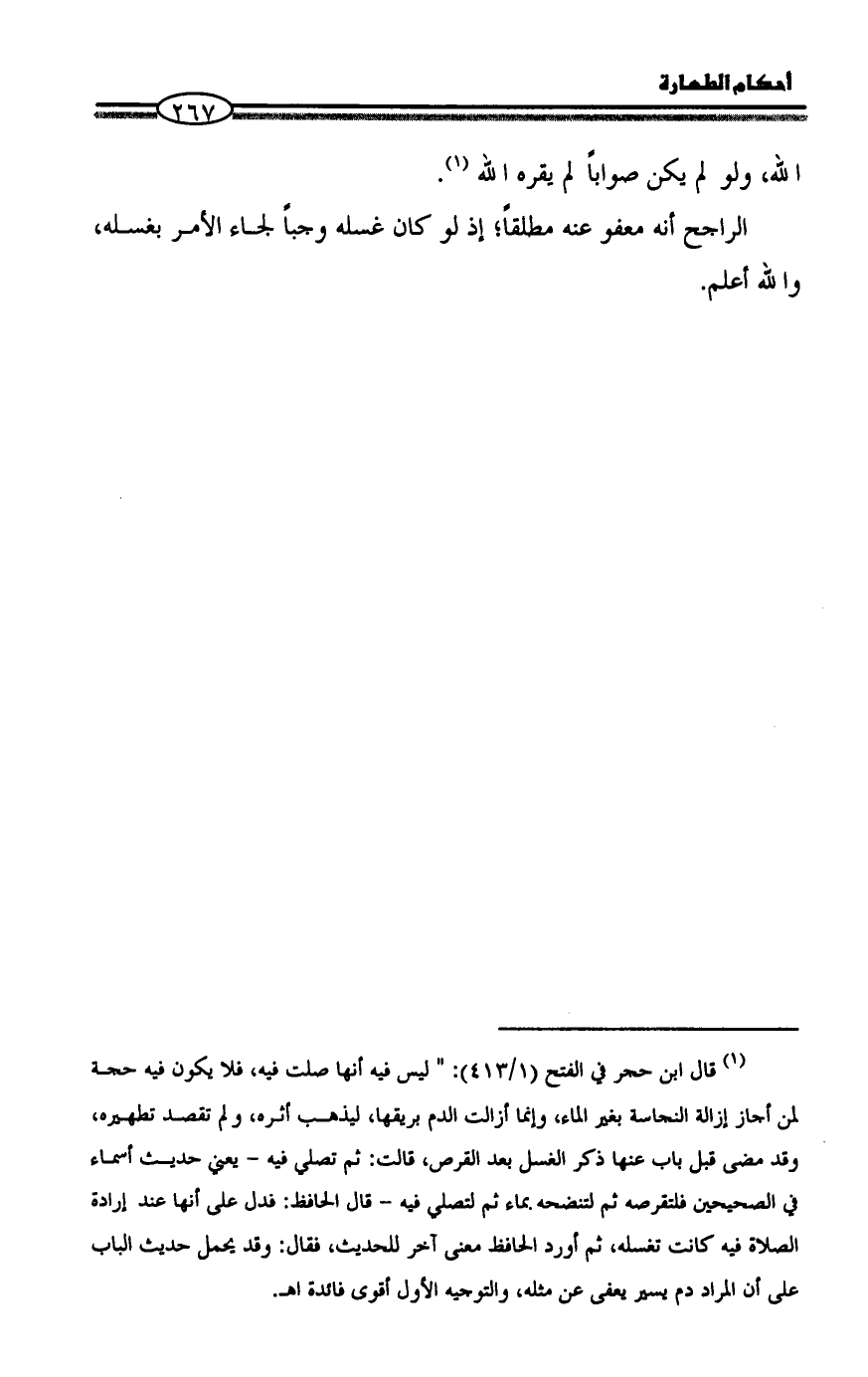 (¬1) قال ابن حجر في الفتح (1/ 413): " ليس فيه أنها صلت فيه، فلا يكون فيه حجة لمن أجاز إزالة النجاسة بغير الماء، وإنما أزالت الدم بريقها، ليذهب أثره، ولم تقصد تطهيره، وقد مضى قبل باب عنها ذكر الغسل بعد القرص، قالت: ثم تصلي فيه - يعني حديث أسماء في الصحيحين فلتقرصه ثم لتنضحه بماء ثم لتصلي فيه - قال الحافظ: فدل على أنها عند إرادة الصلاة فيه كانت تغسله، ثم أورد الحافظ معنى آخر للحديث، فقال: وقد يحمل حديث الباب على أن المراد دم يسير يعفى عن مثله، والتوجيه الأول أقوى فائدة. اهـ